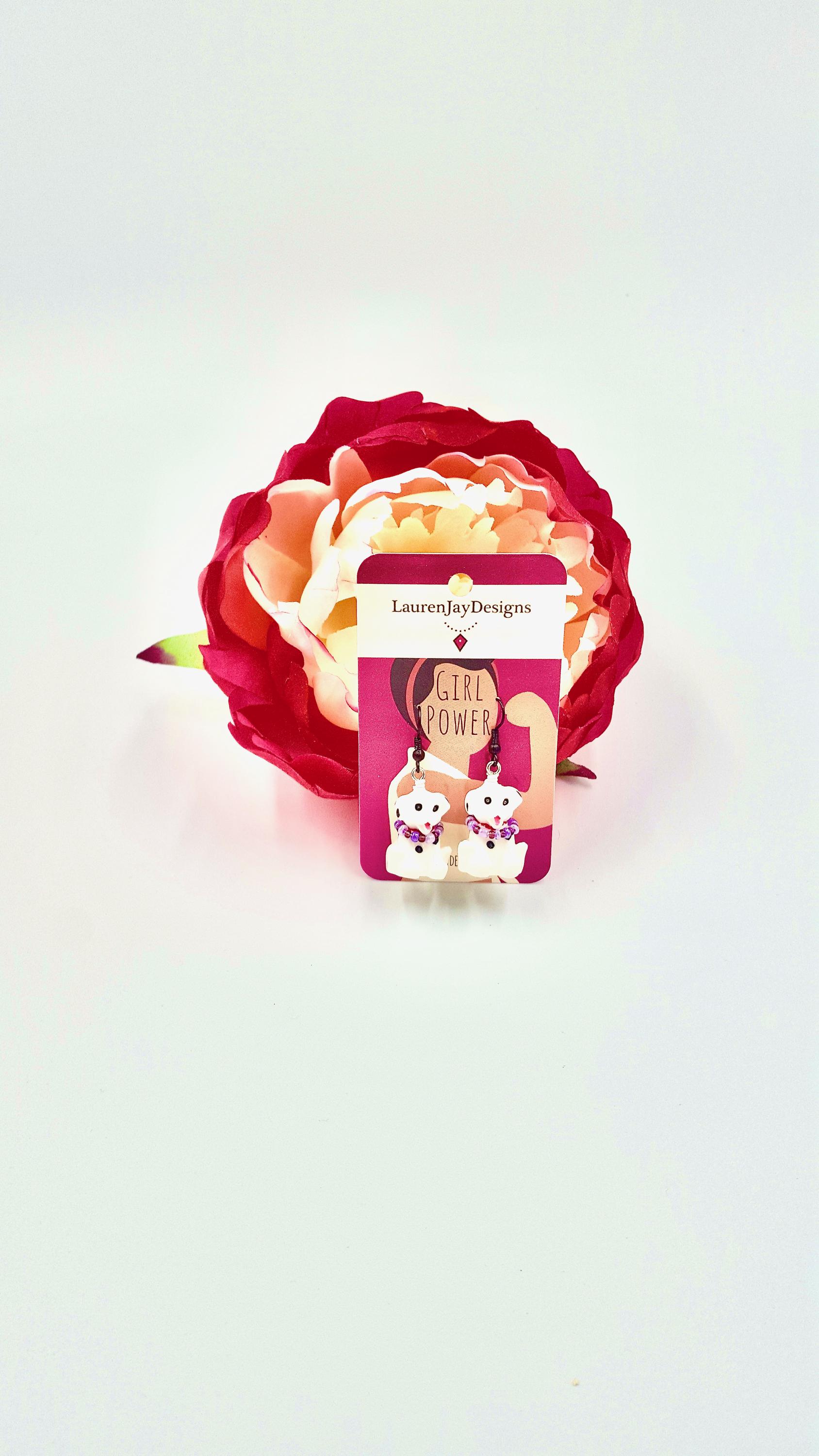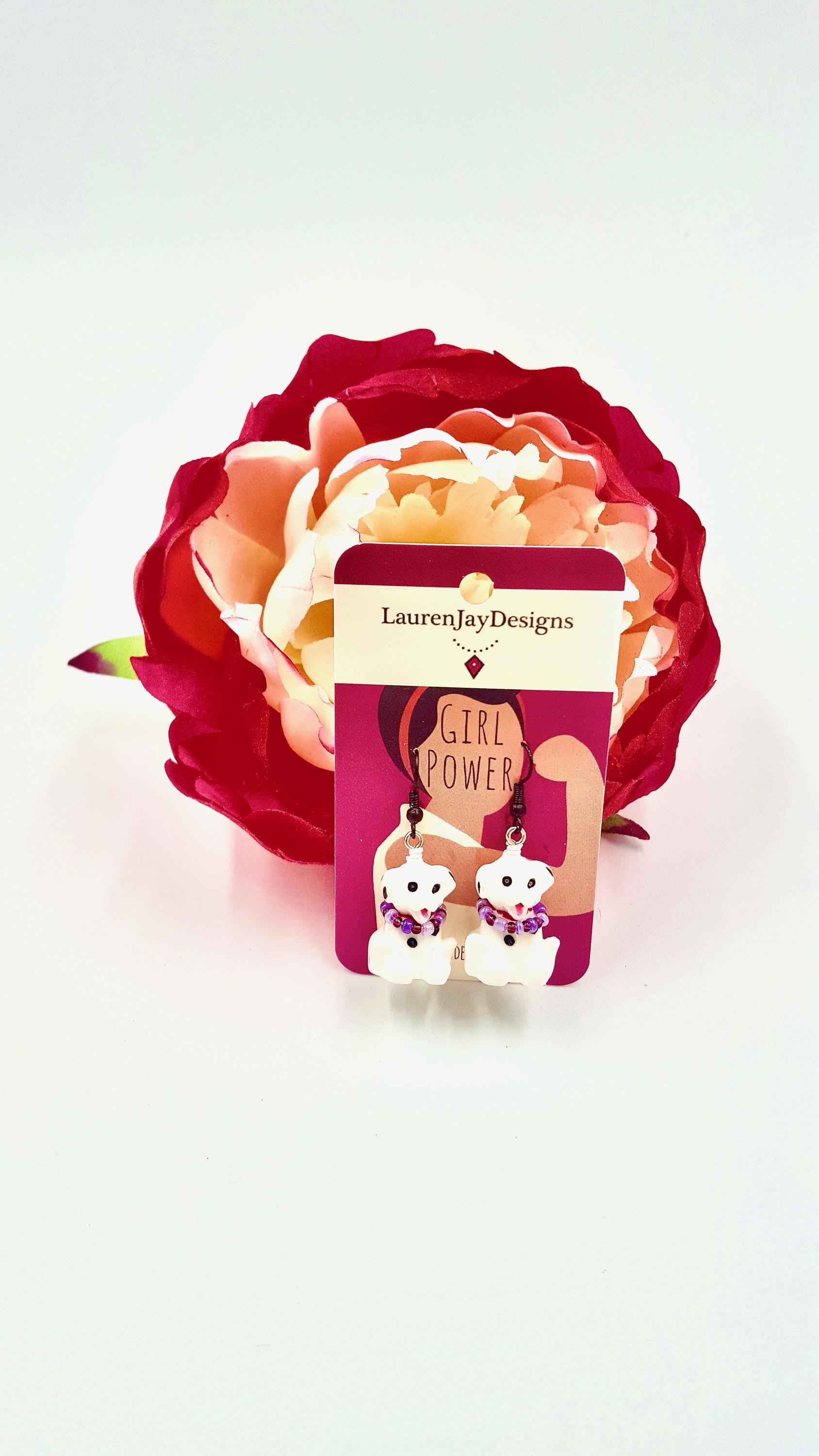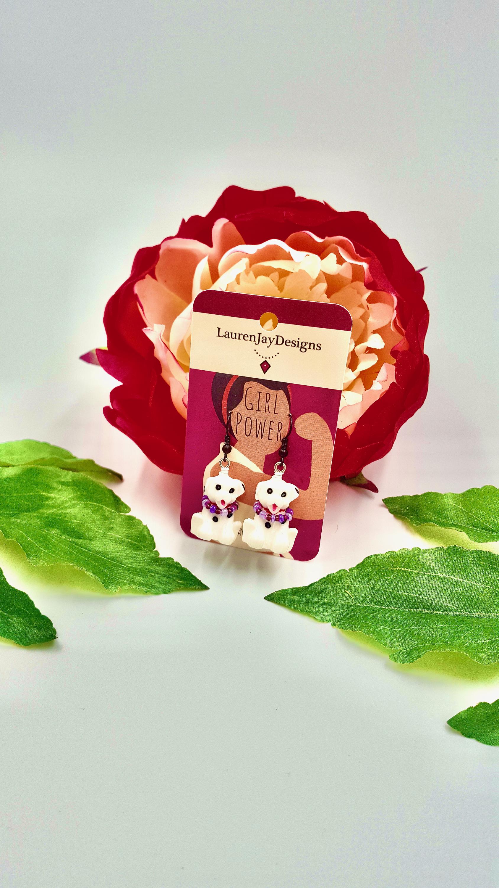 Dalmatian Dog Pink and Purple Beaded Dangle Earrings by Lauren Jay Designs!