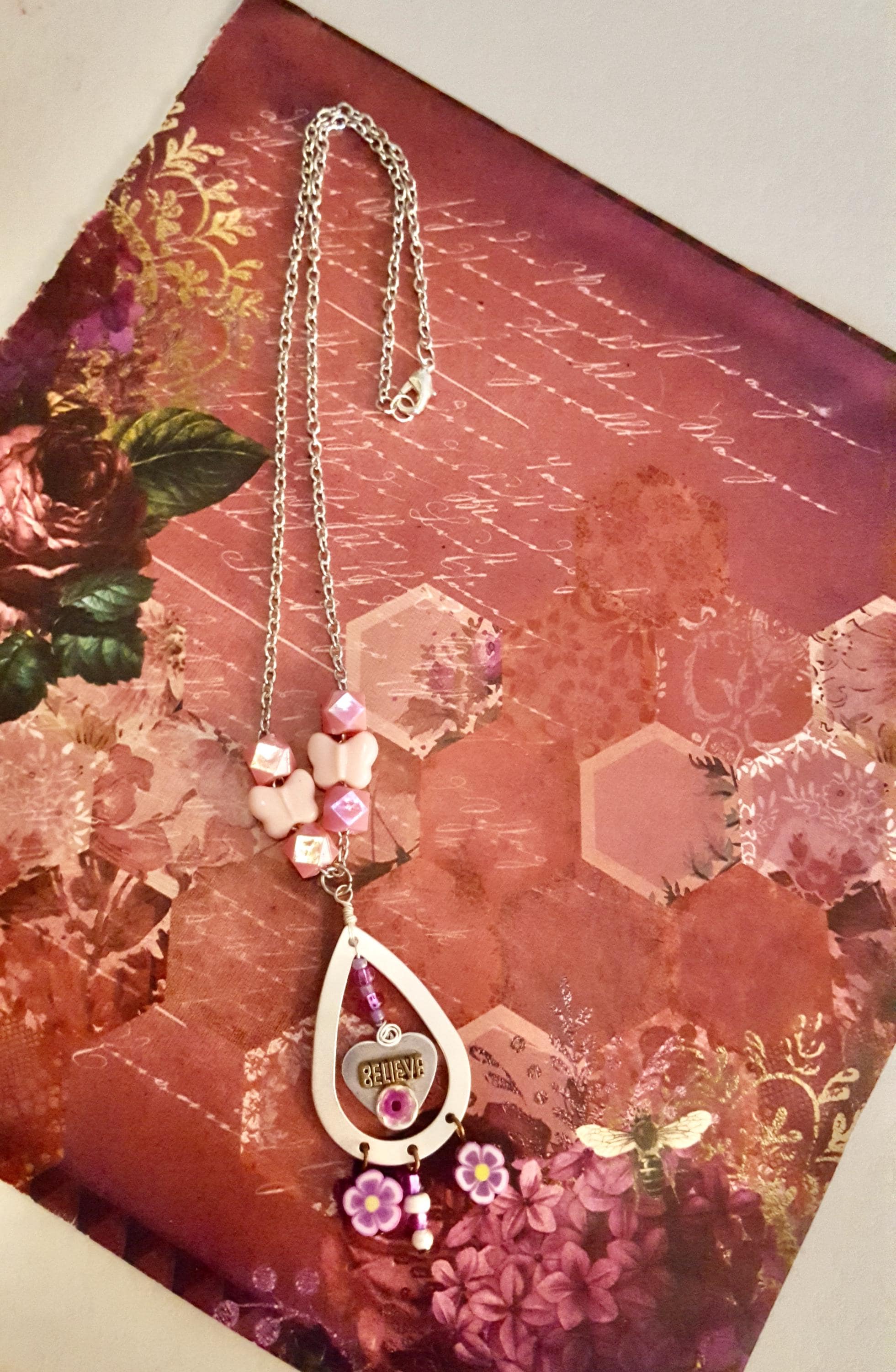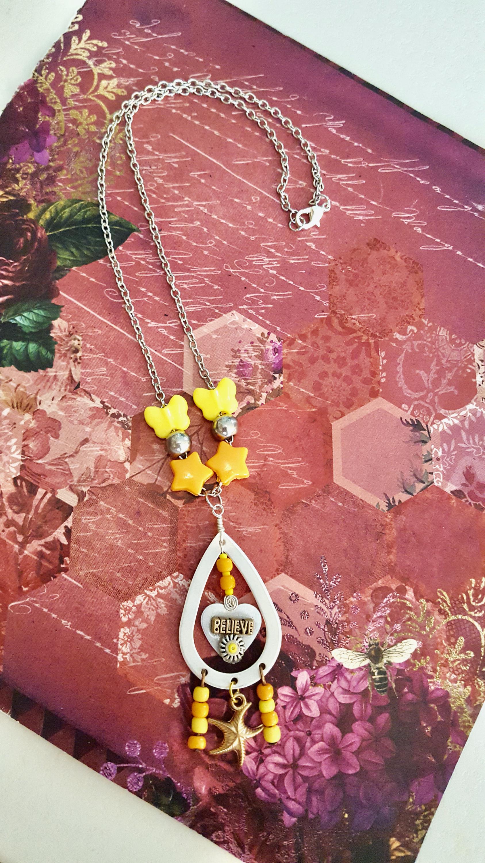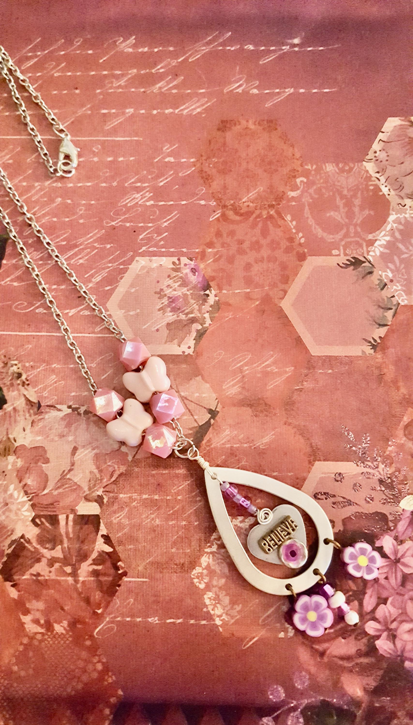 Believe Heart Silver Teardrop Pendant Flower, Star and Butterfly Beaded Silver Chain Necklace by Lauren Jay Designs!
