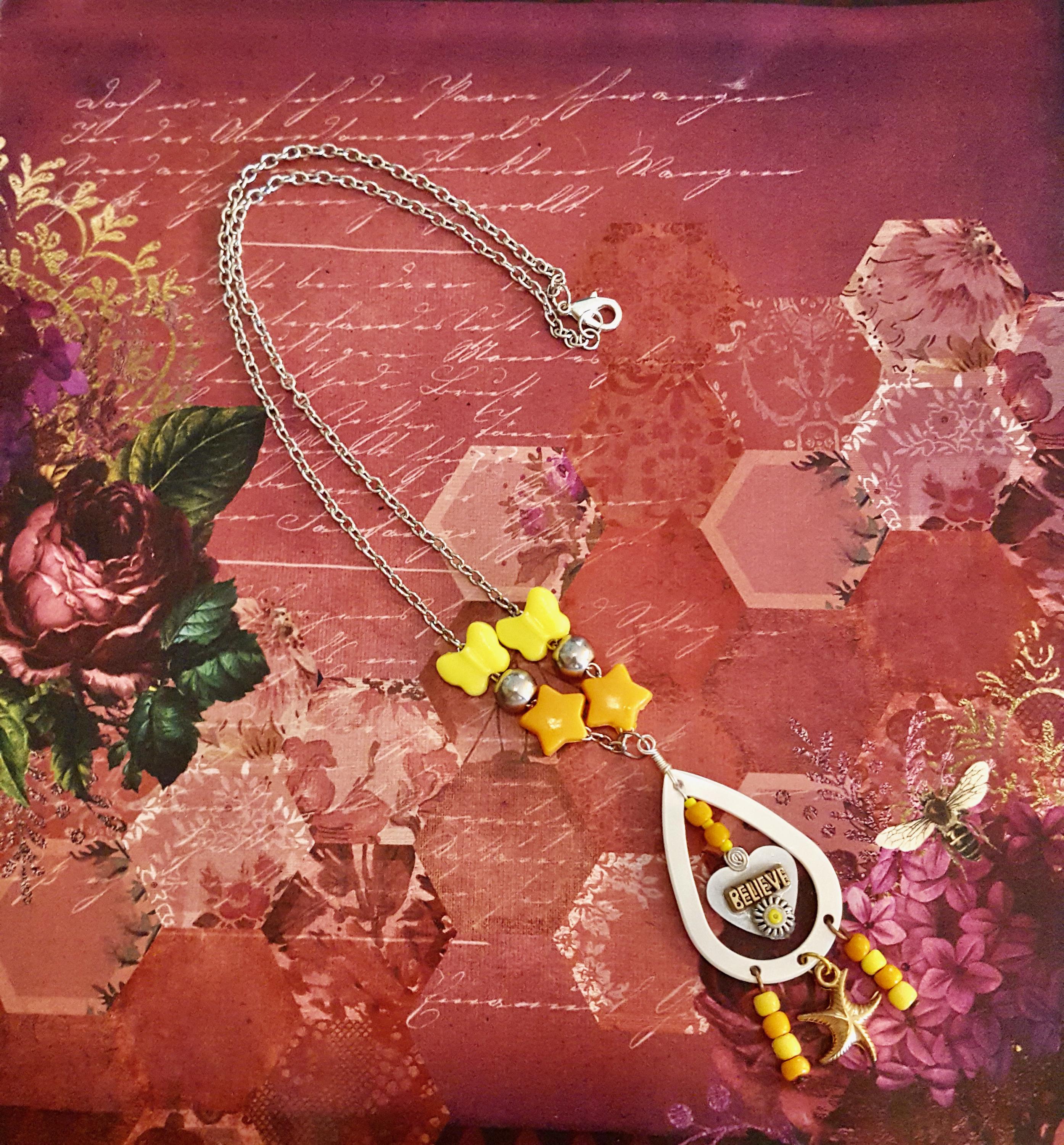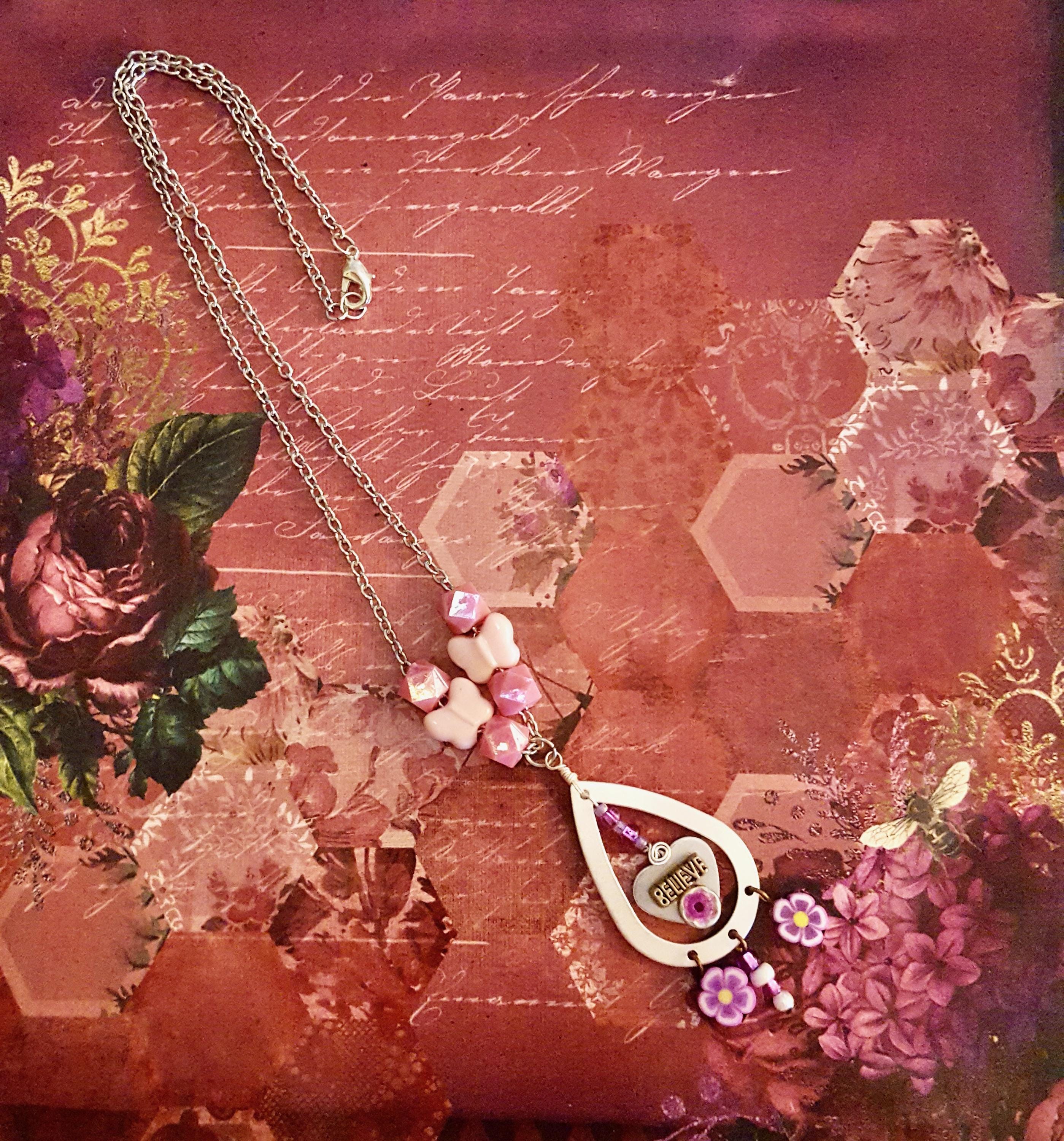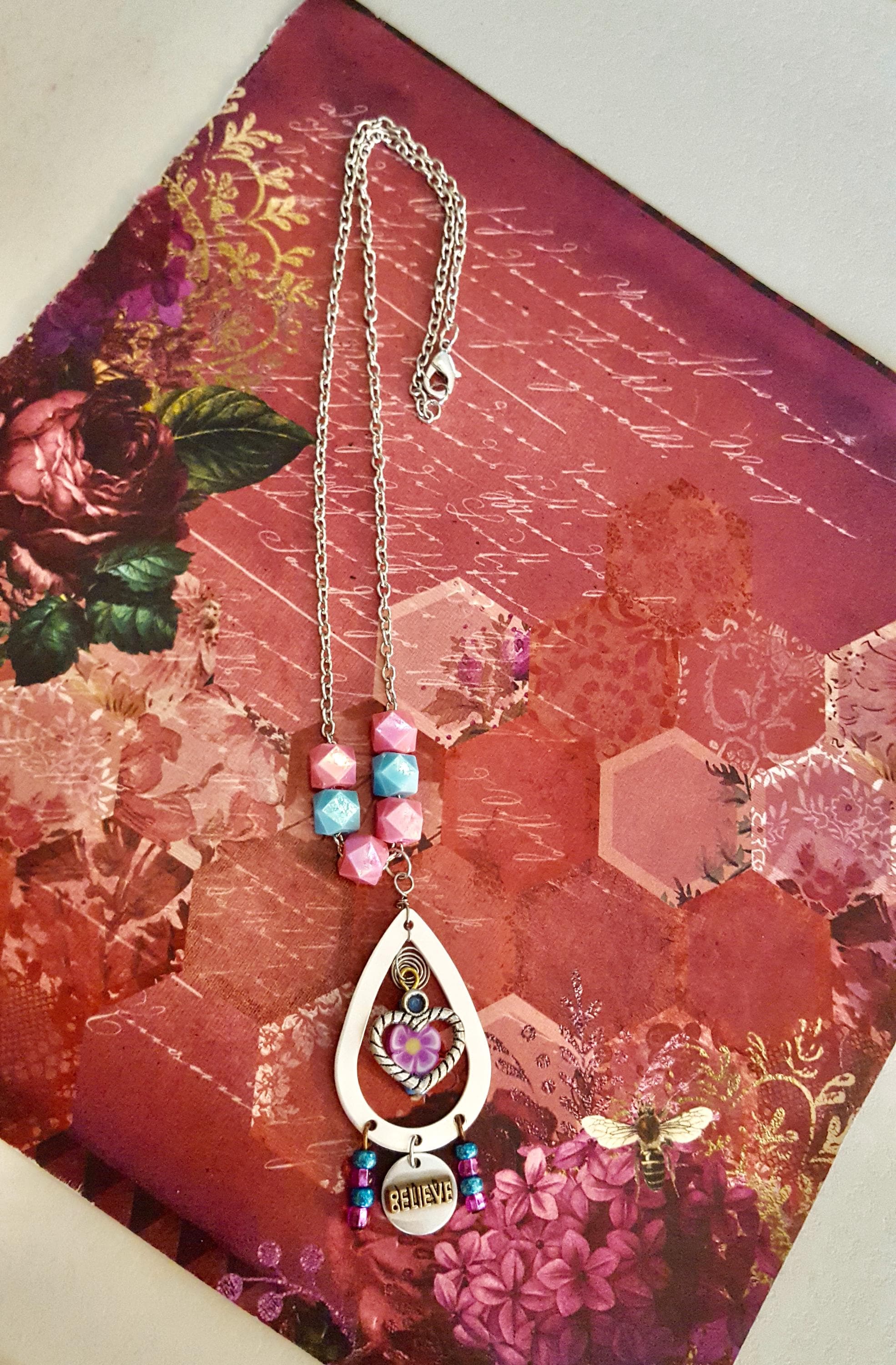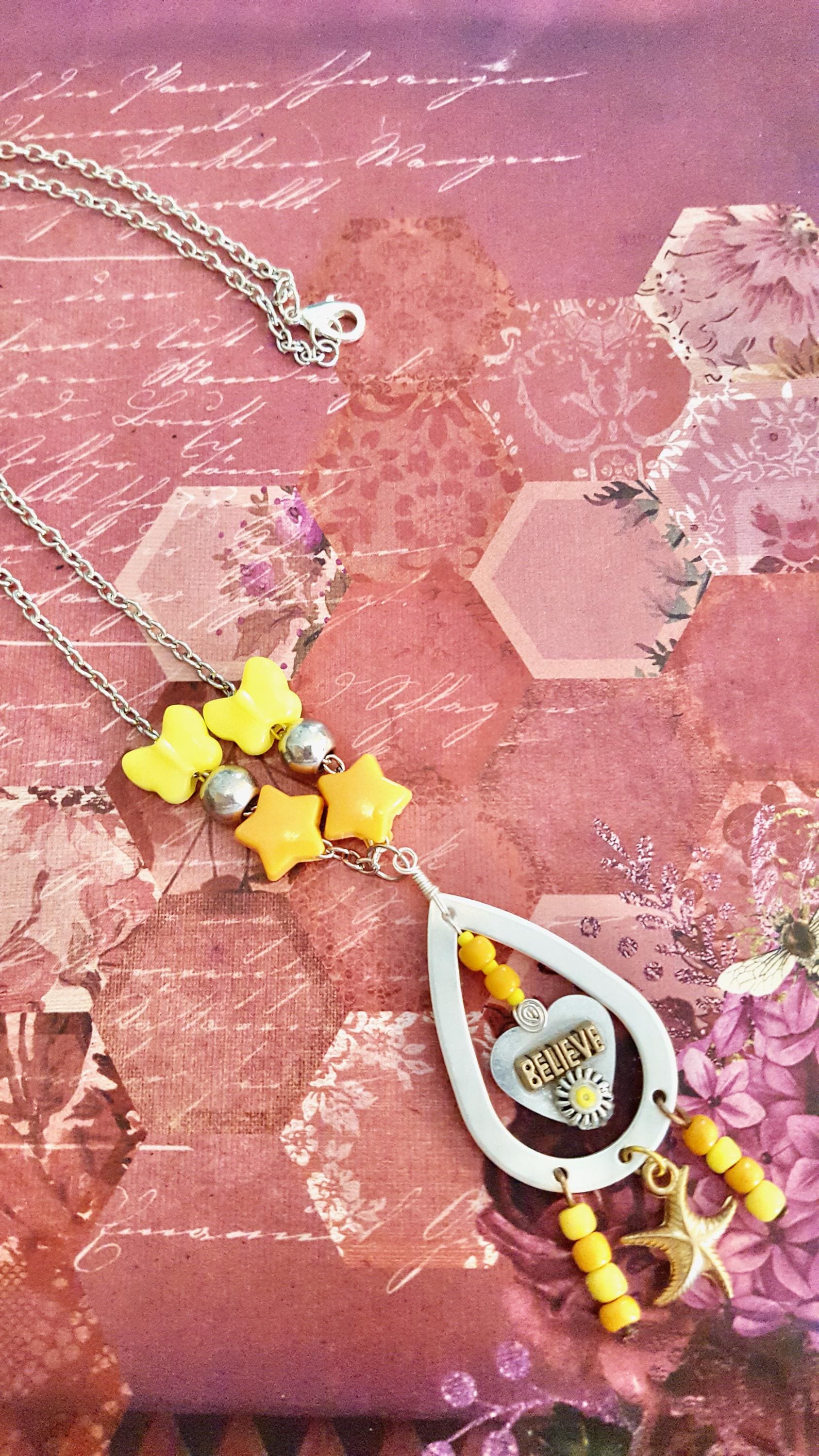 Believe Heart Silver Teardrop Pendant Flower, Star and Butterfly Beaded Silver Chain Necklace by Lauren Jay Designs!