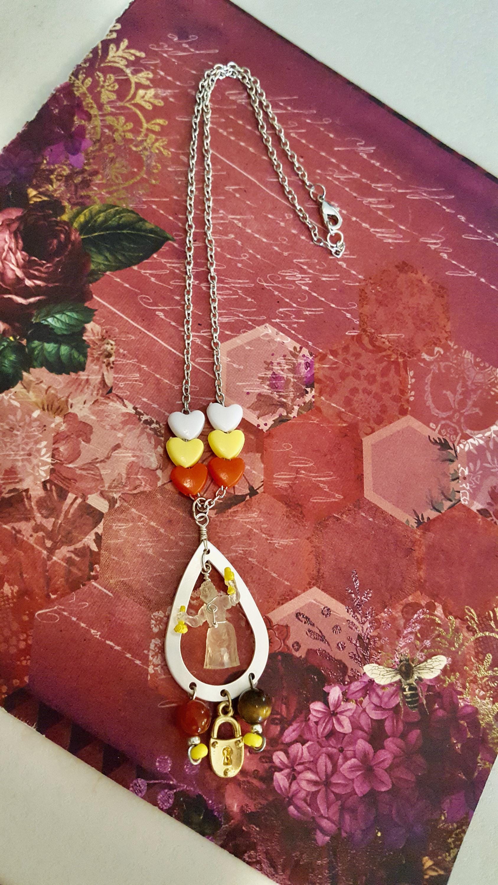 1993 Polly Pocket Water Fun Park/Cinderella Fairy Godmother Doll Silver Teardrop Pendant Beaded Silver Chain Necklace by Lauren Jay Designs!