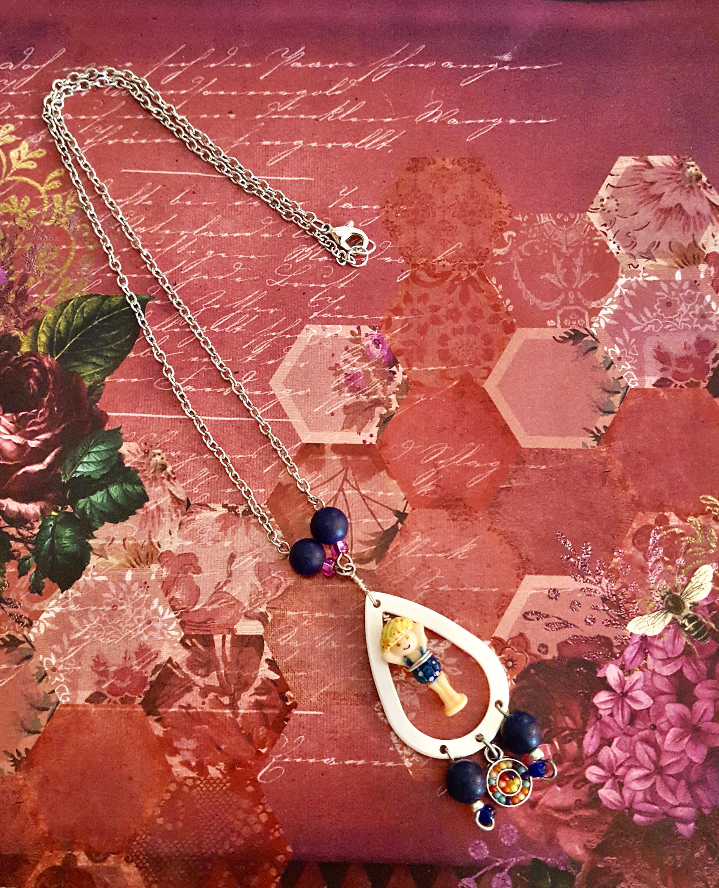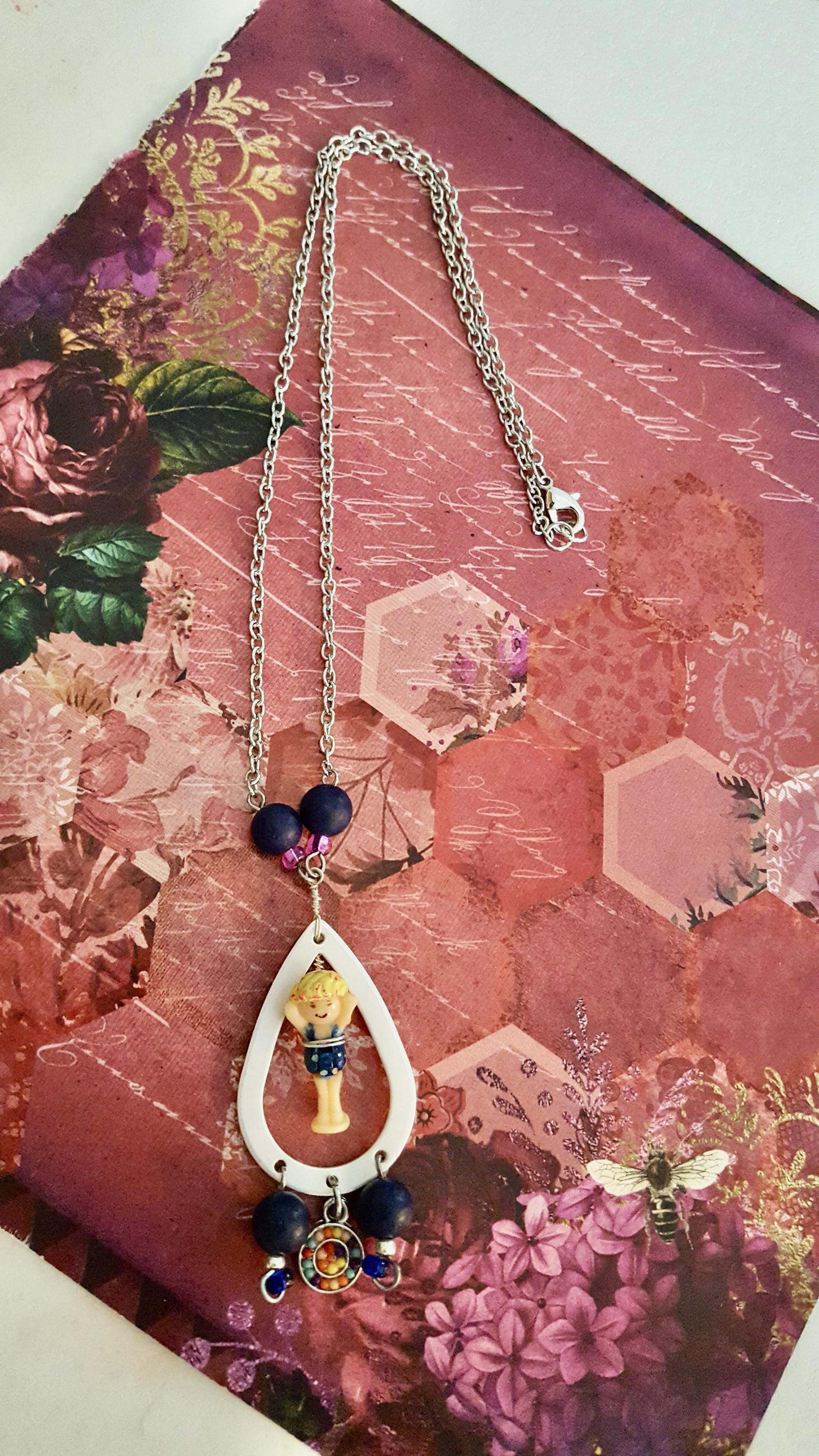 1993 Polly Pocket Water Fun Park Doll Silver Teardrop Pendant Beaded Silver Chain Necklace by Lauren Jay Designs!