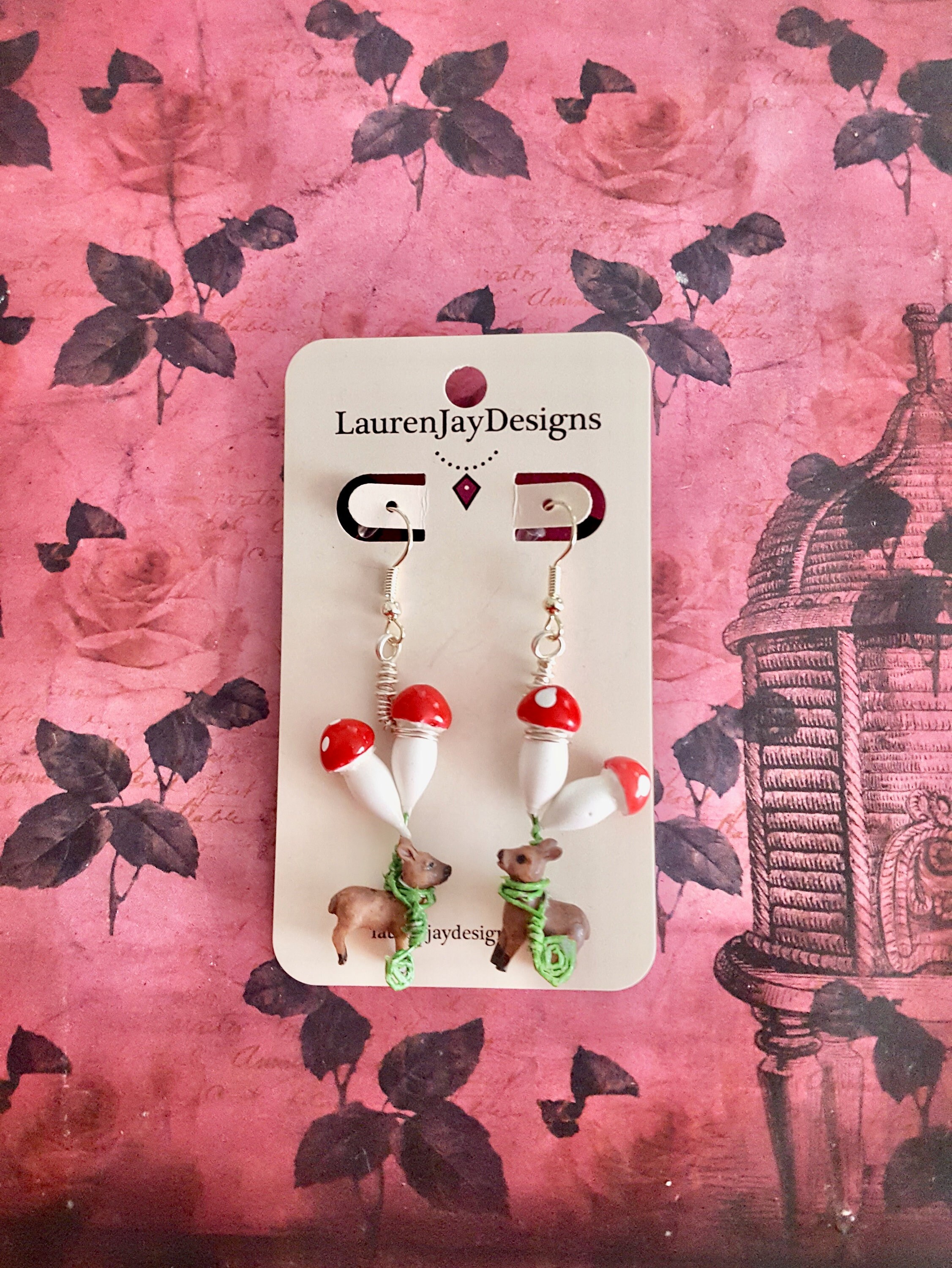 Fall Reindeer and Mushroom Fairycore Dangle Earrings by Lauren Jay Designs!