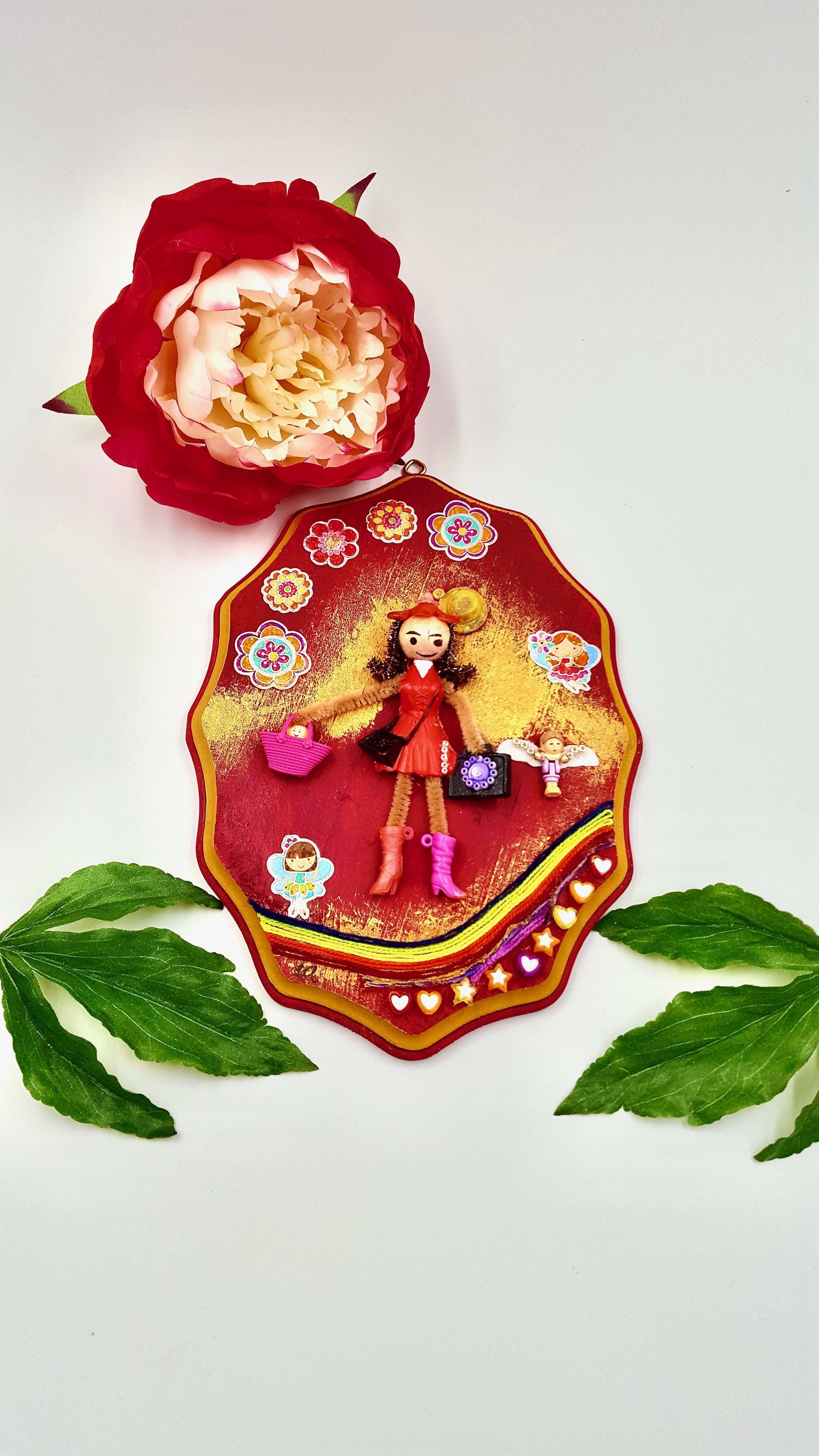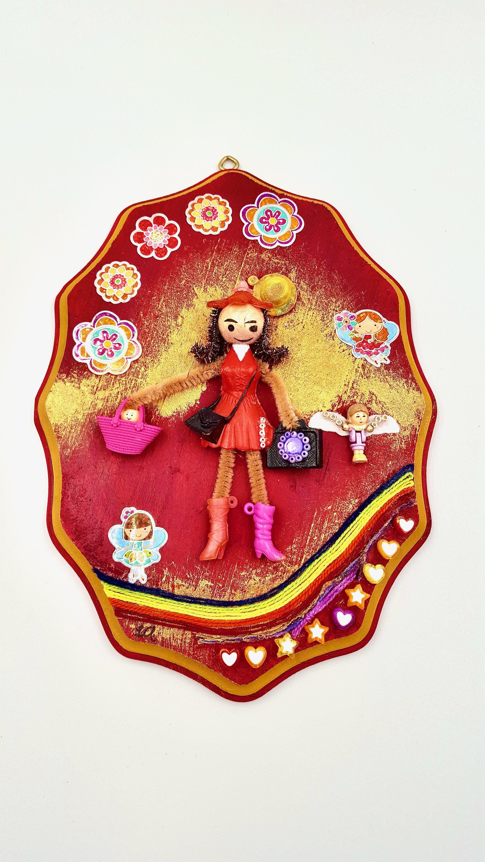 -Floral Fashion Girl in Polly Pocket Red Dress with Briefcase, Polly Pocket Pink Boots and Red/Pink Floral Hat