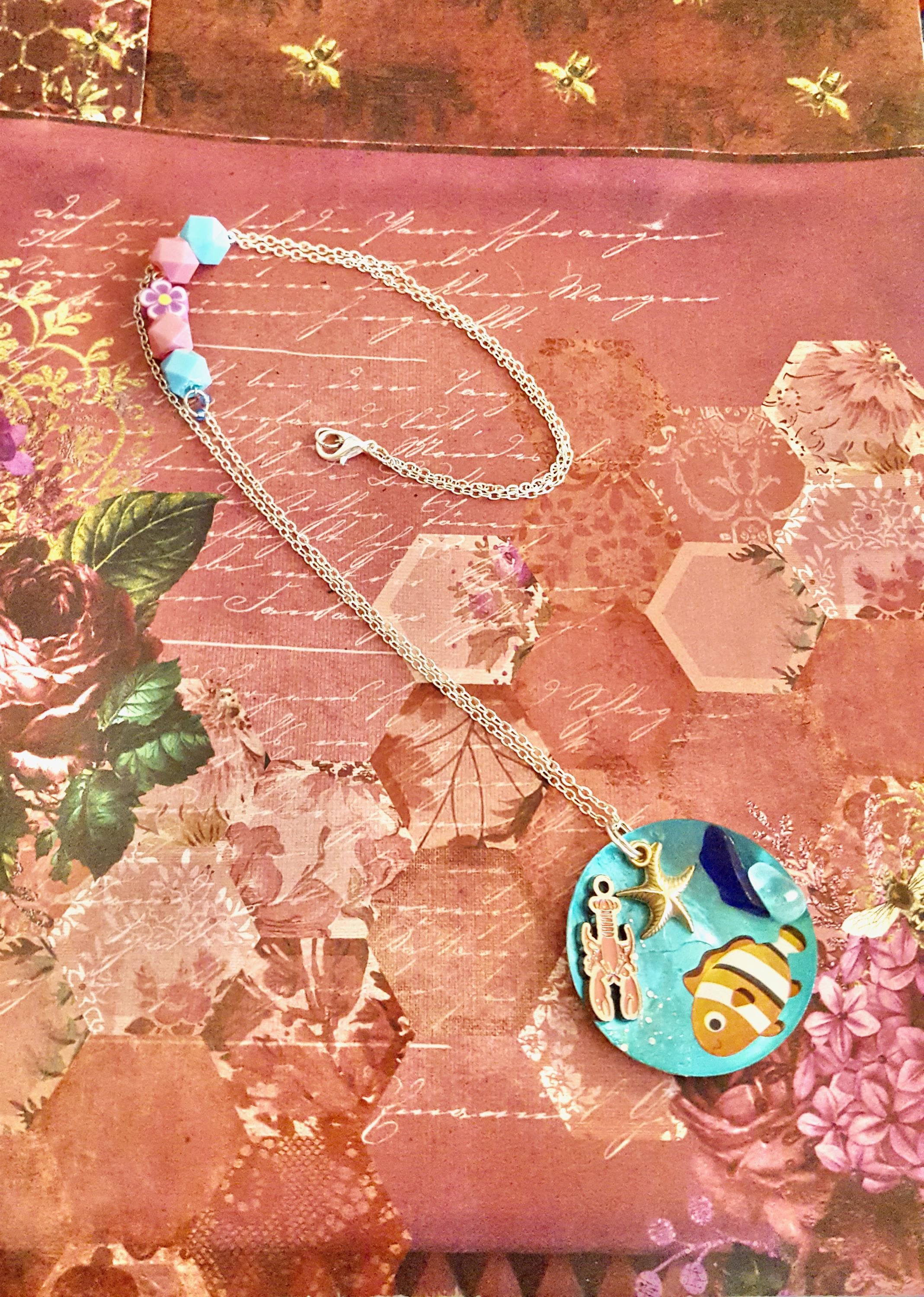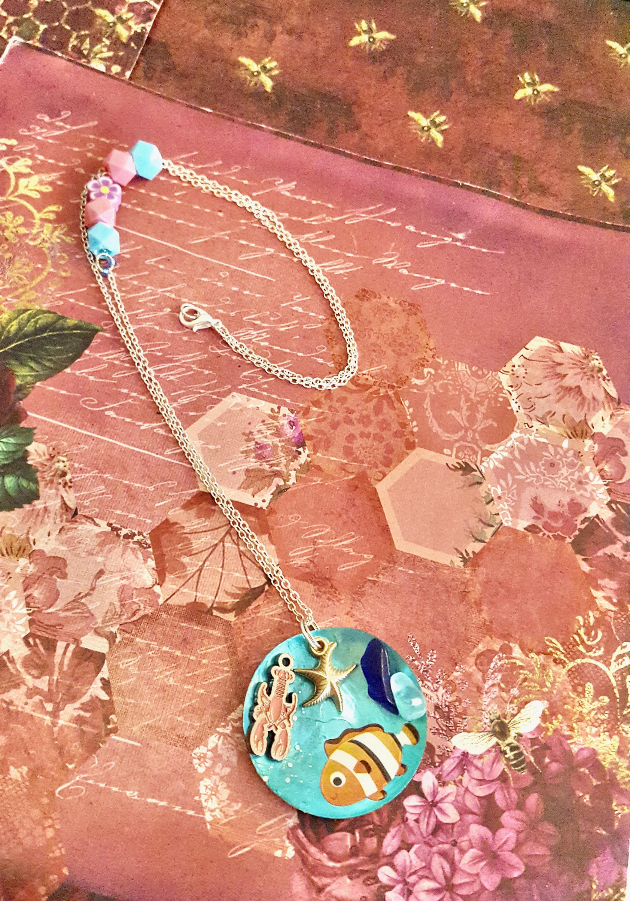 Under The Sea Starfish, Lobster, Clown Fish and Sea Glass Blue Shell Pendant Beaded Chain Necklace by Lauren Jay Designs!