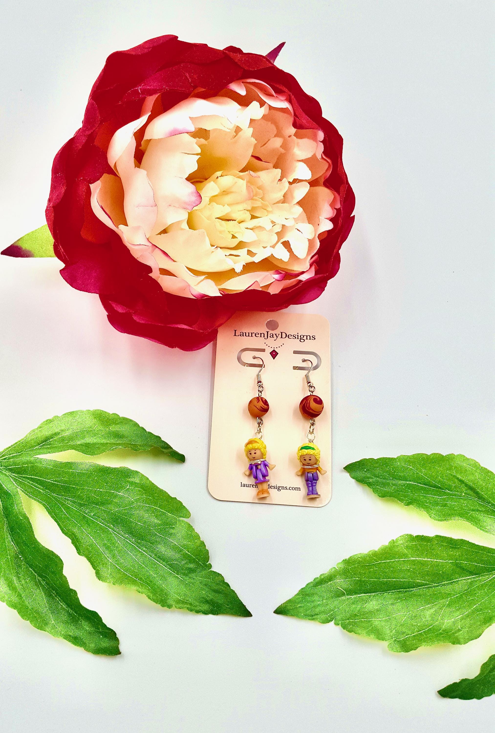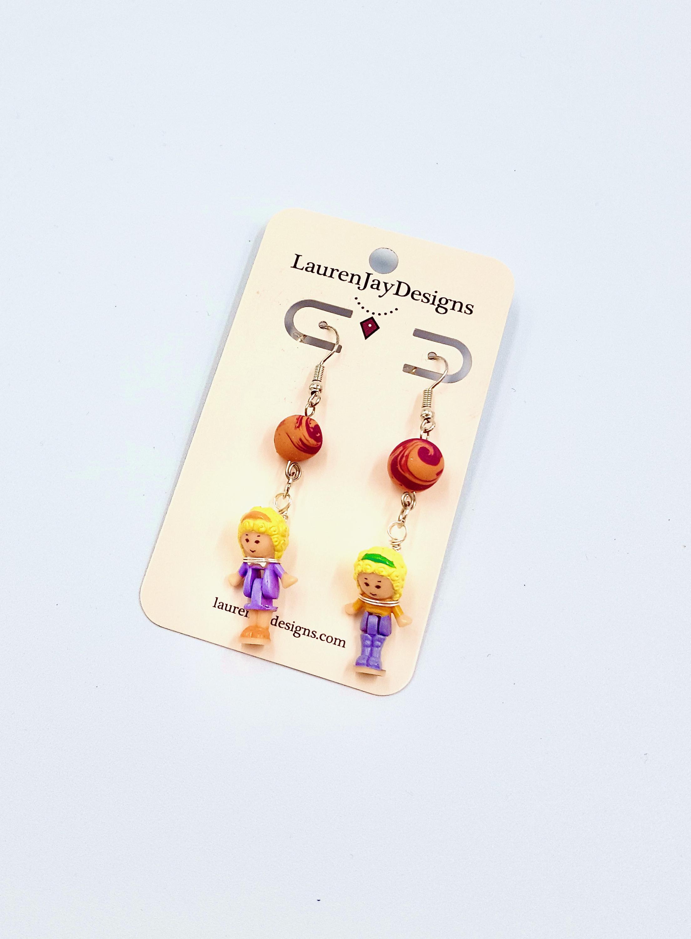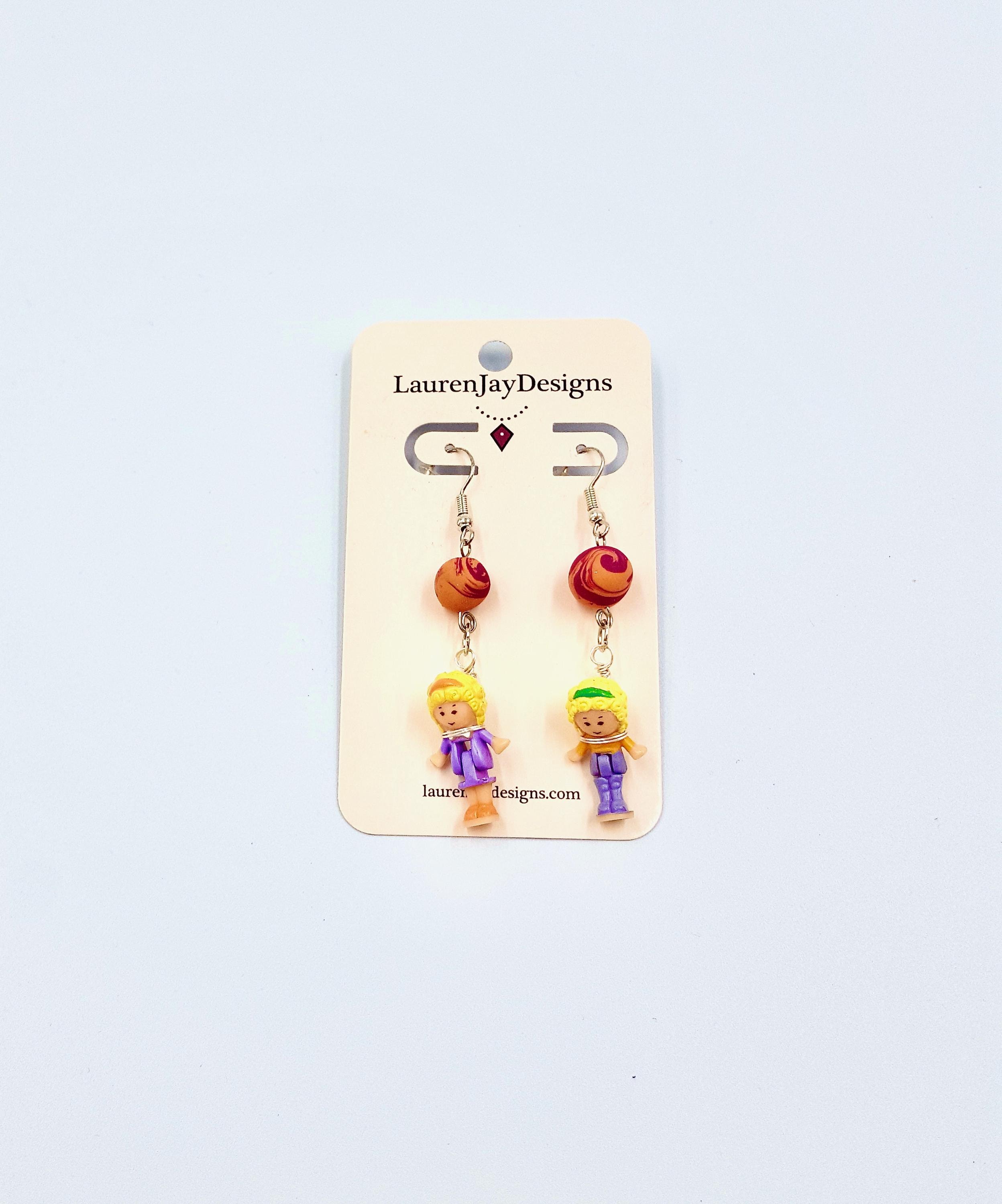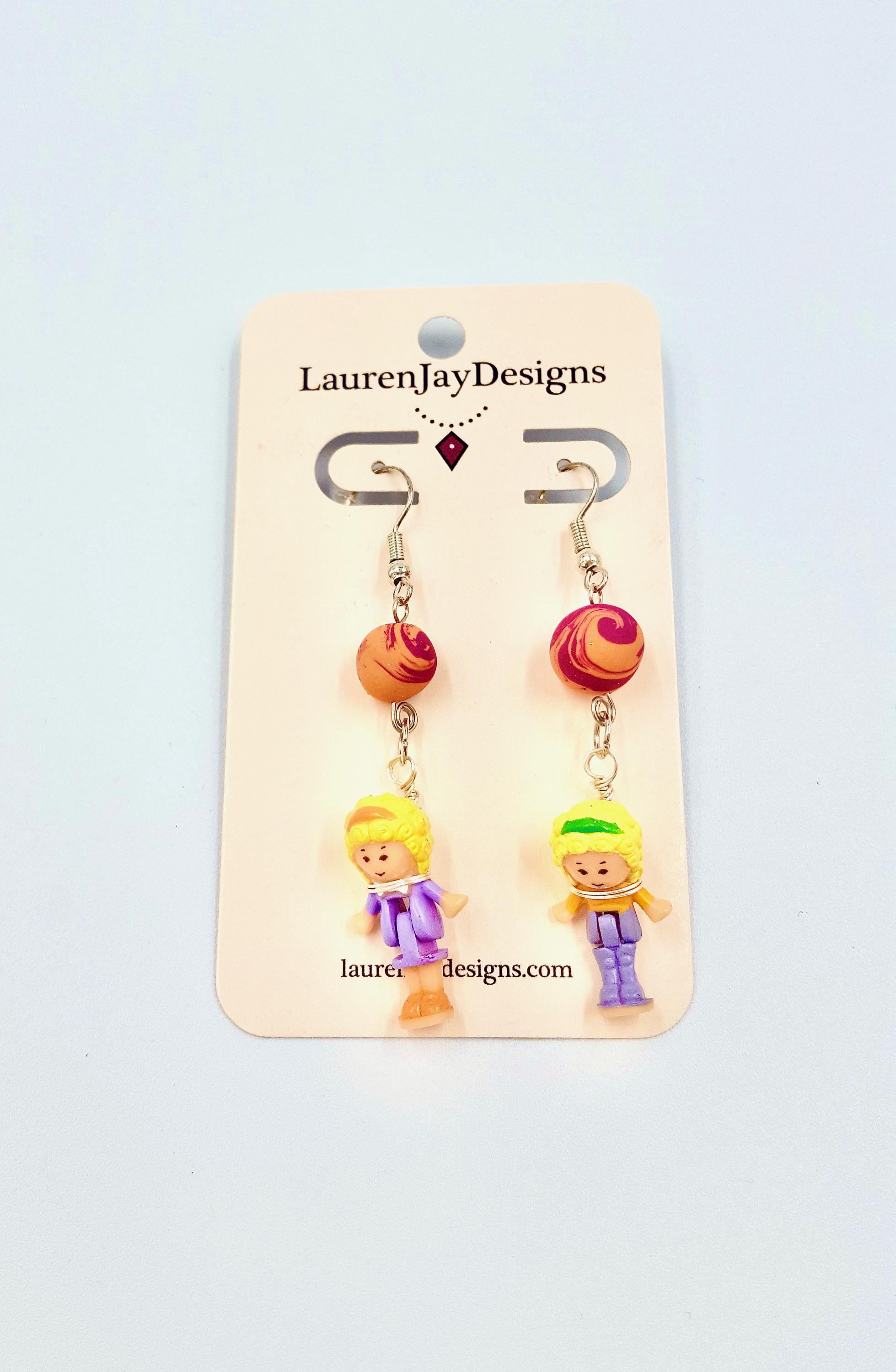 Polly Pocket Purple, Pink and Orange Beaded Dangle Earrings by Lauren Jay Designs!