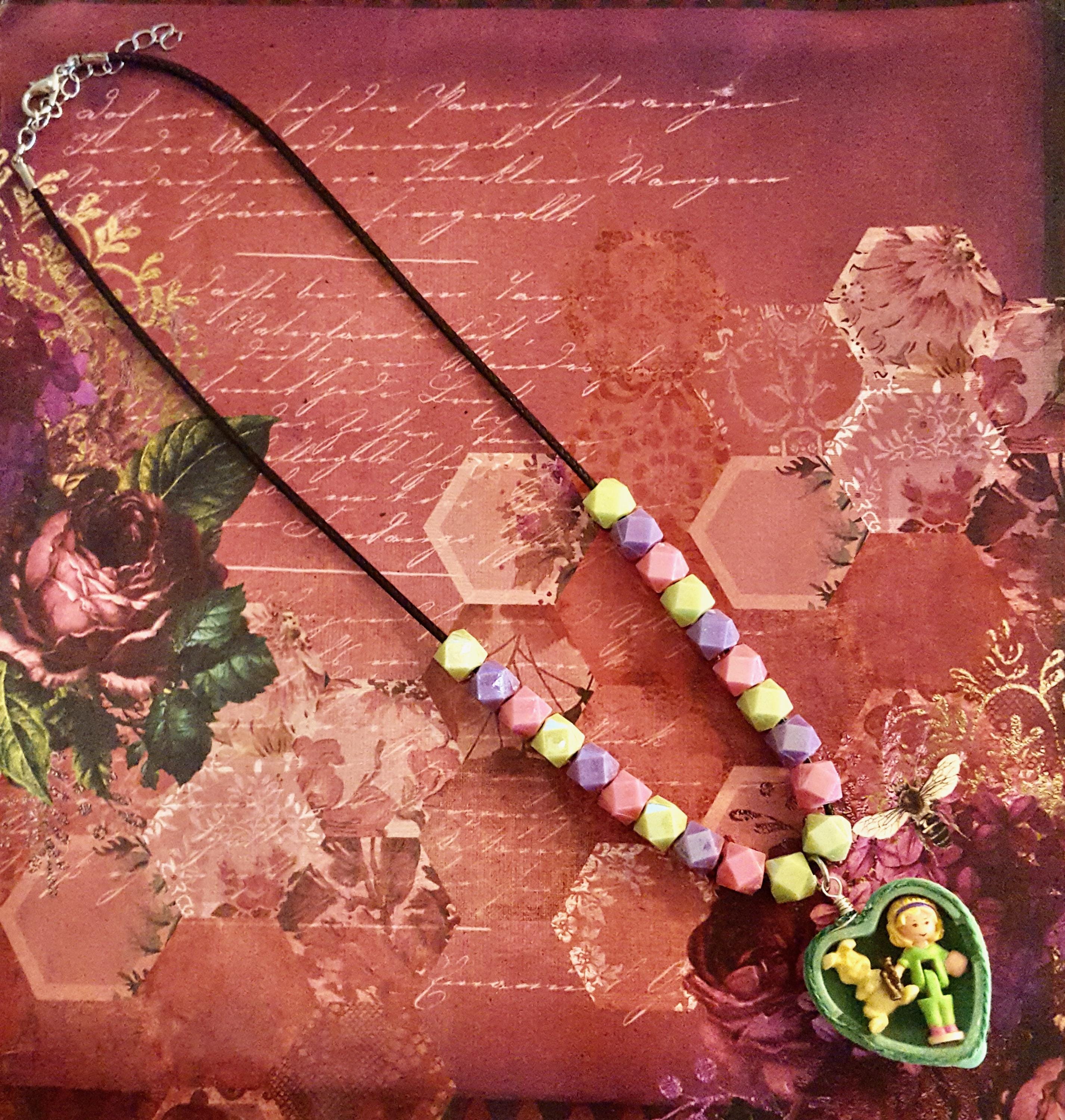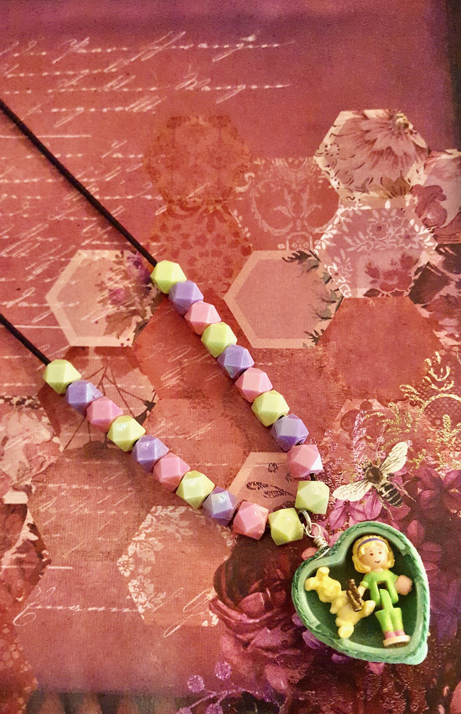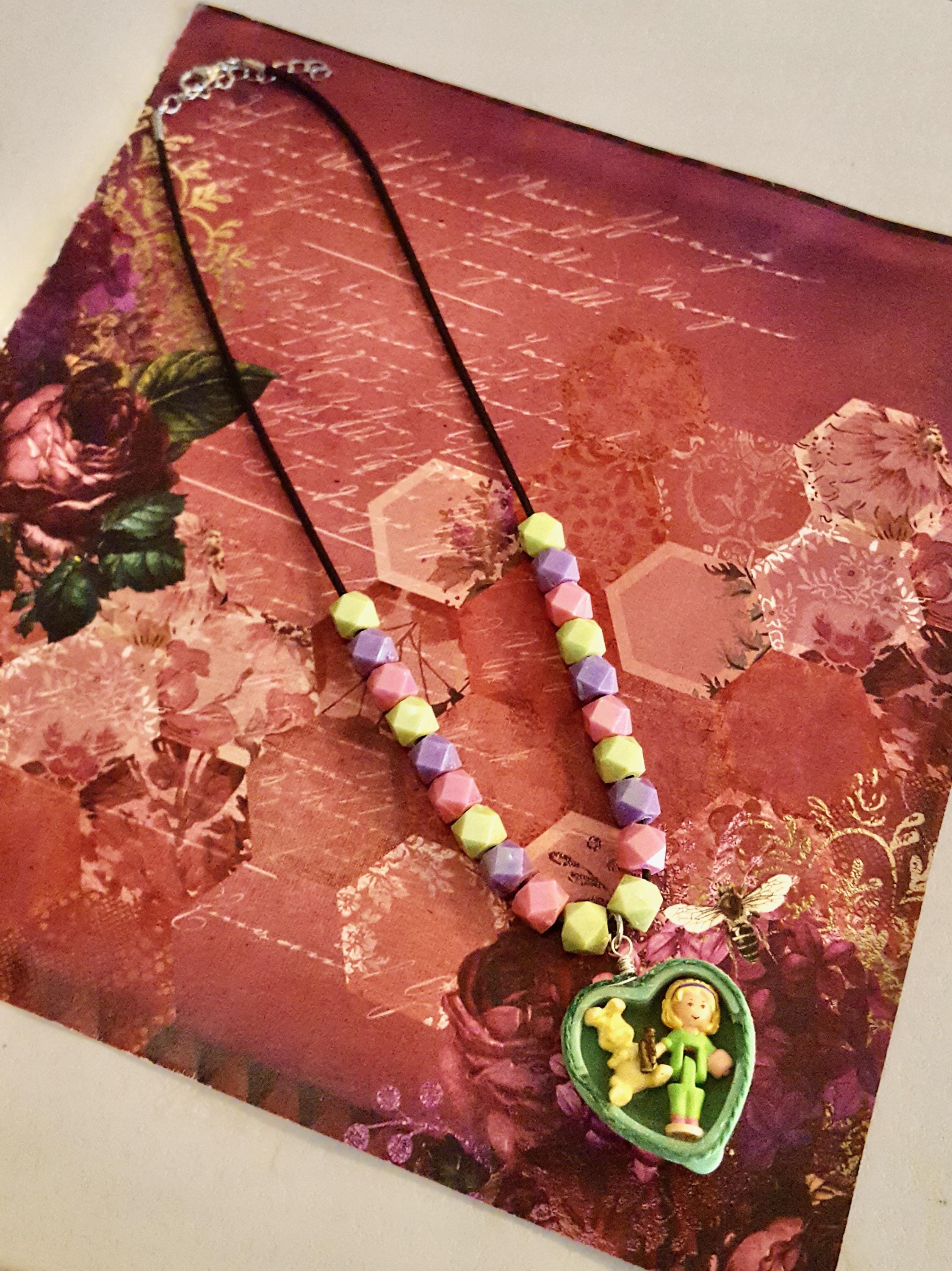 1994 Polly Pocket My Pet Bunny Doll Pendant Beaded Cord Necklace by Lauren Jay Designs!