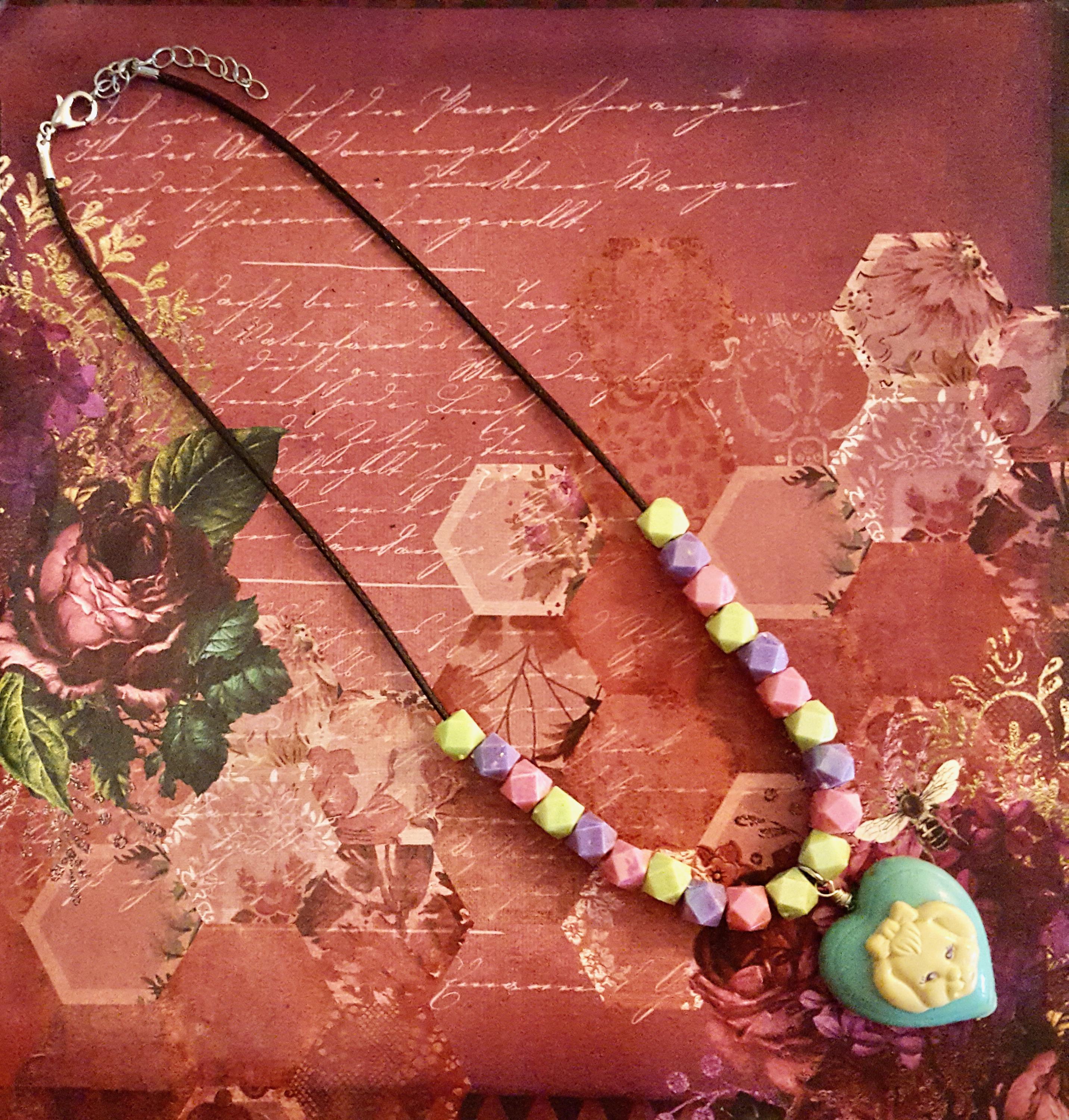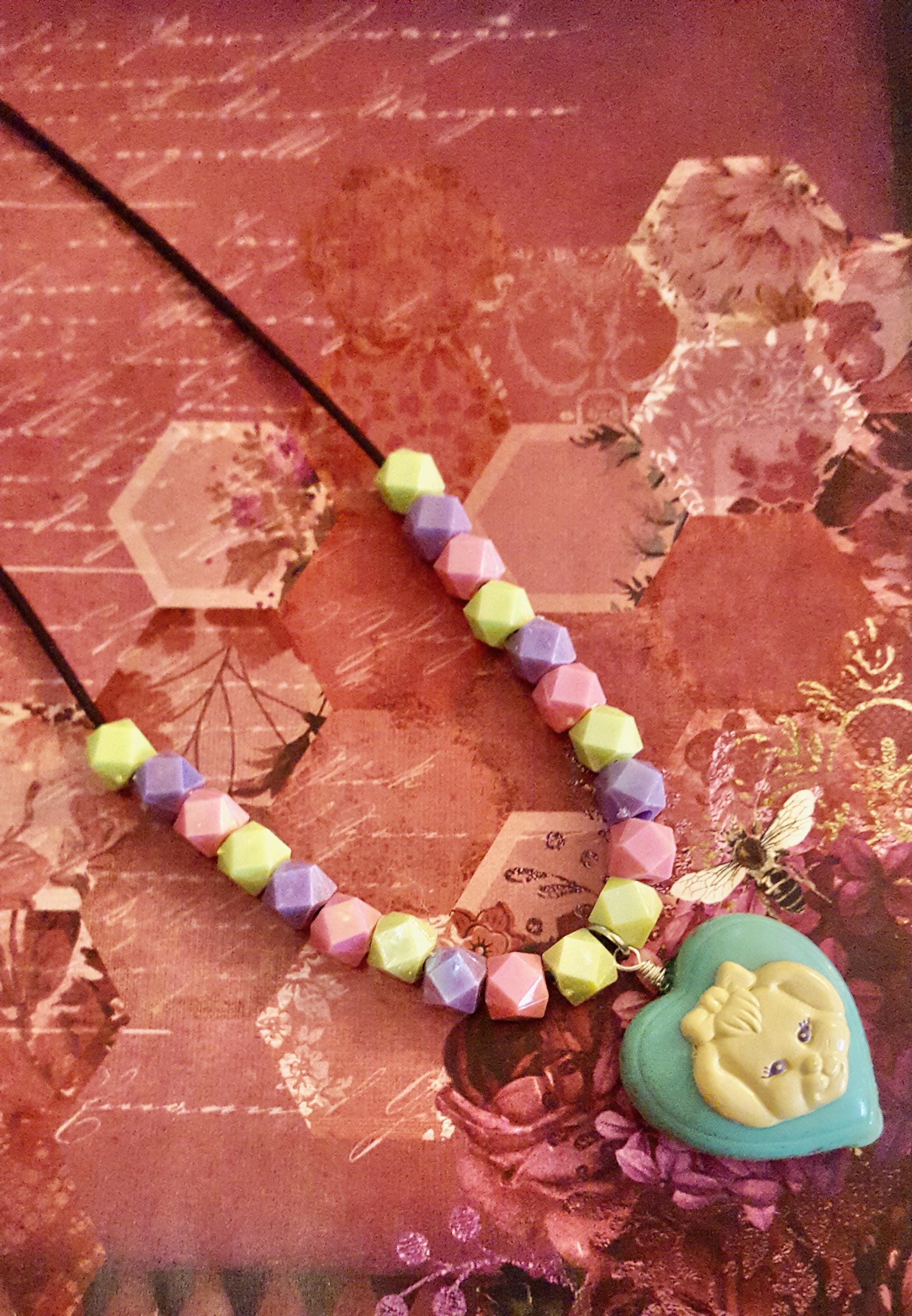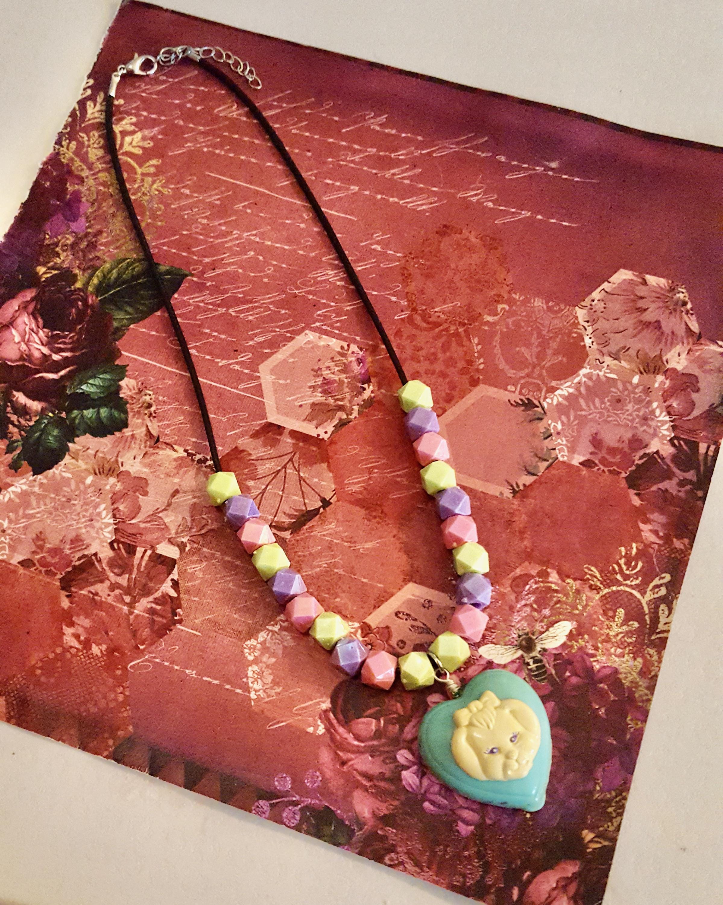 1994 Polly Pocket My Pet Bunny Doll Pendant Beaded Cord Necklace by Lauren Jay Designs!