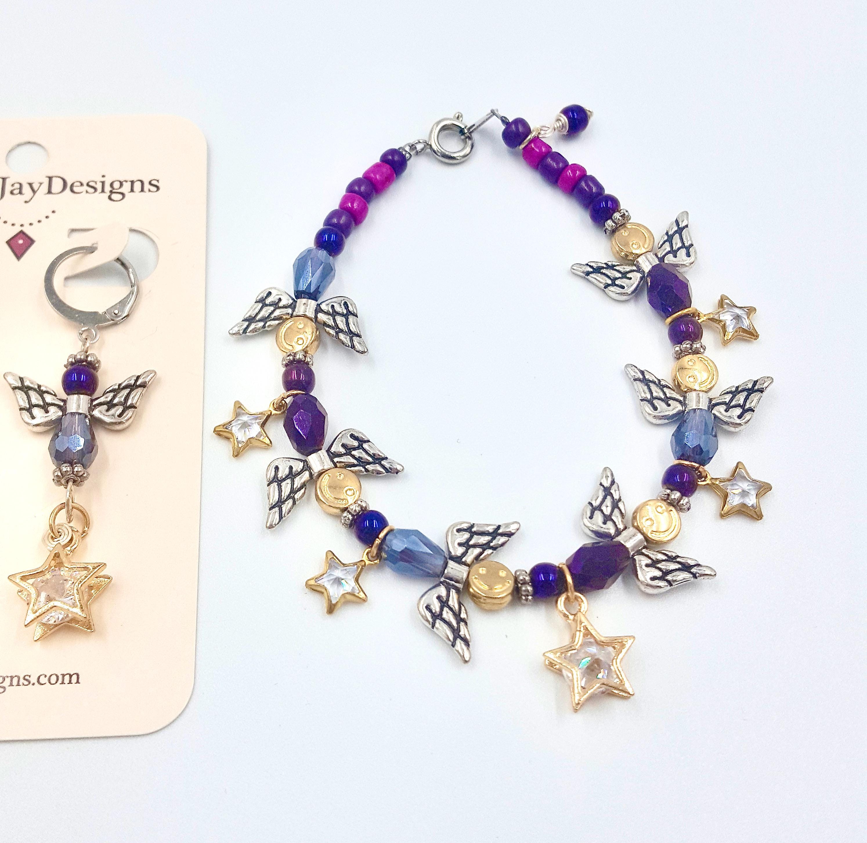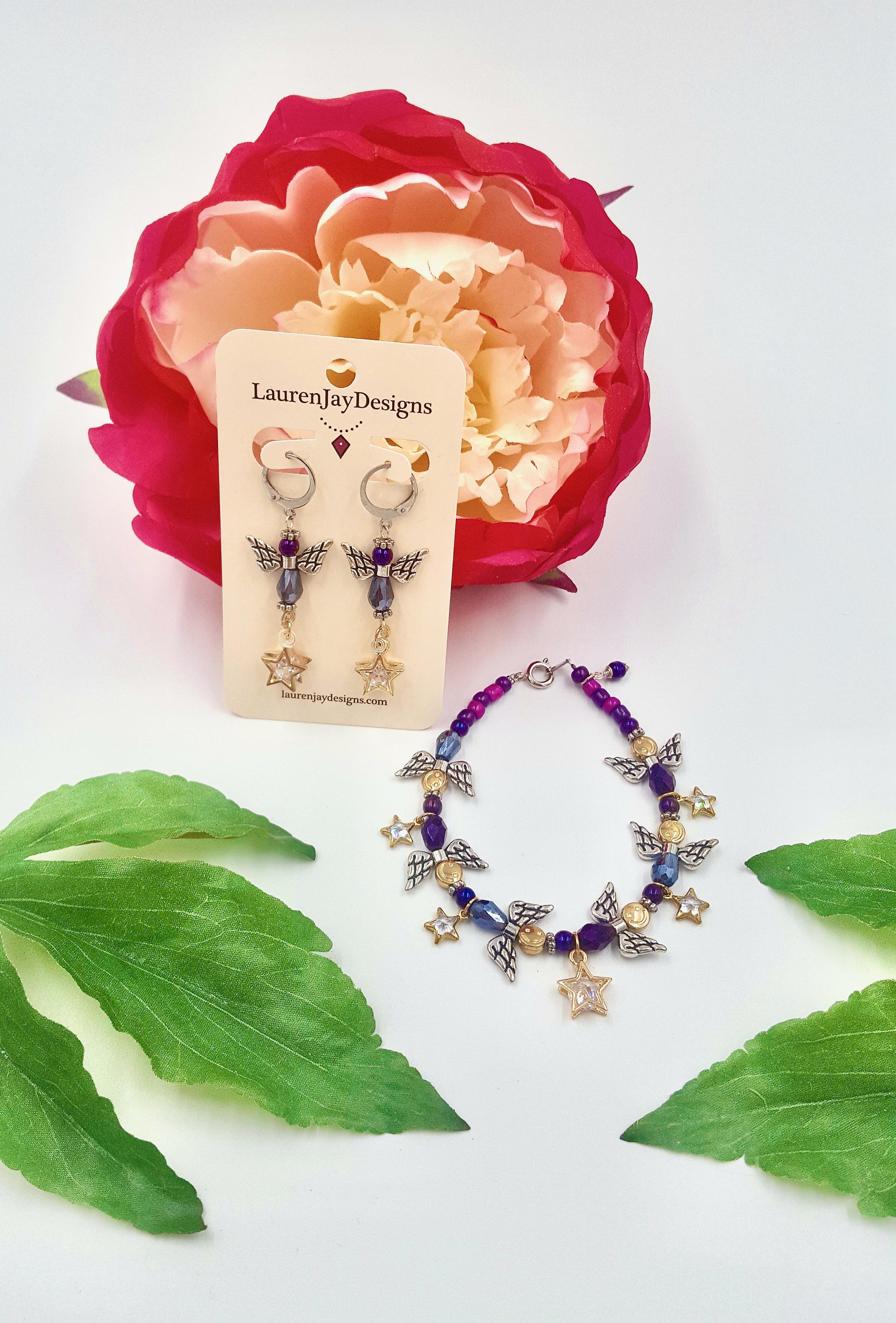 Purple Fairy Angel Crystal Star Beaded Earrings and Beaded Bracelet by Lauren Jay Designs!