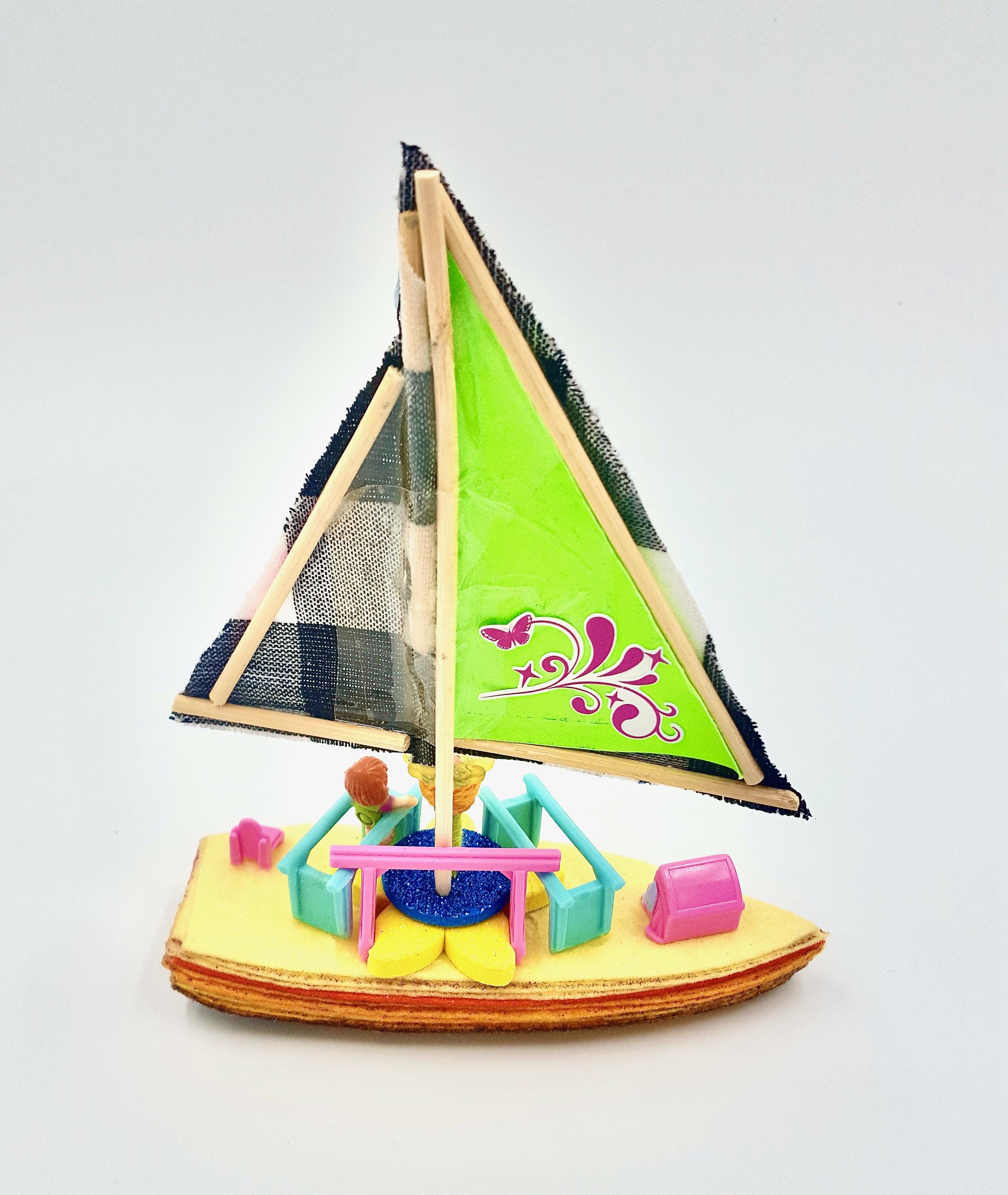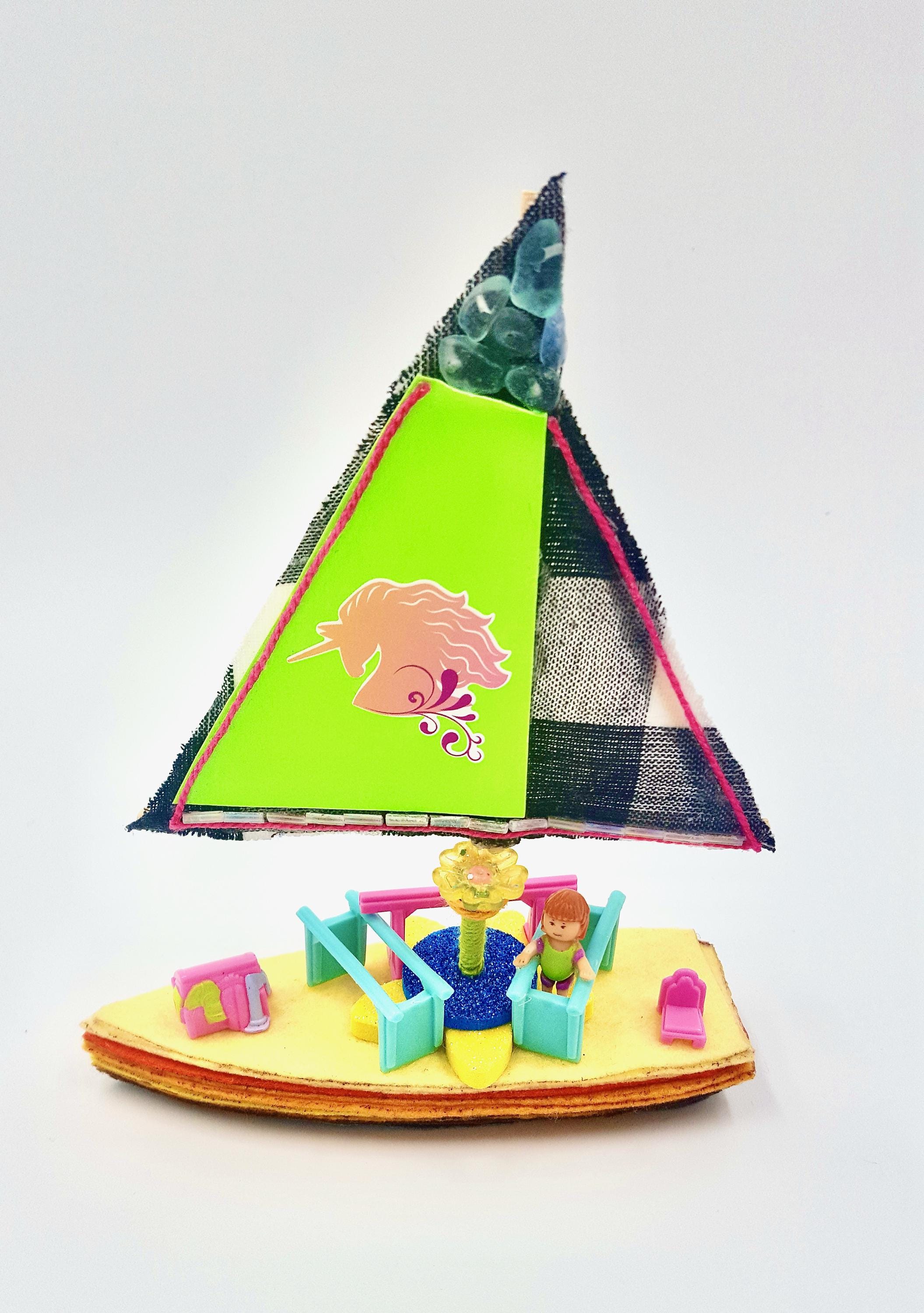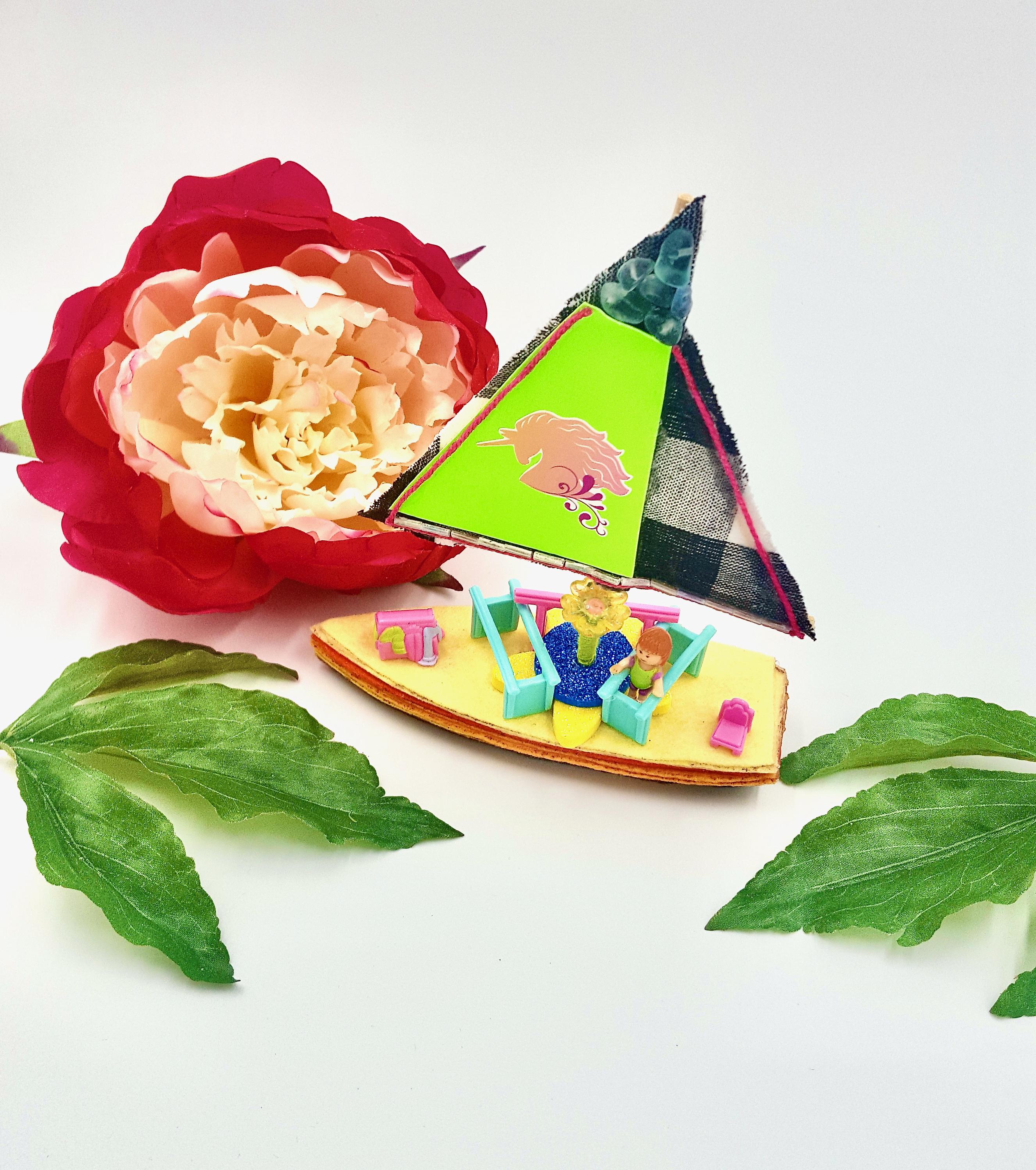 Polly Pocket Unicorn Sailboat Art with 1995 Clubhouse Gymnastics Doll and Furniture by Lauren Jay Designs!