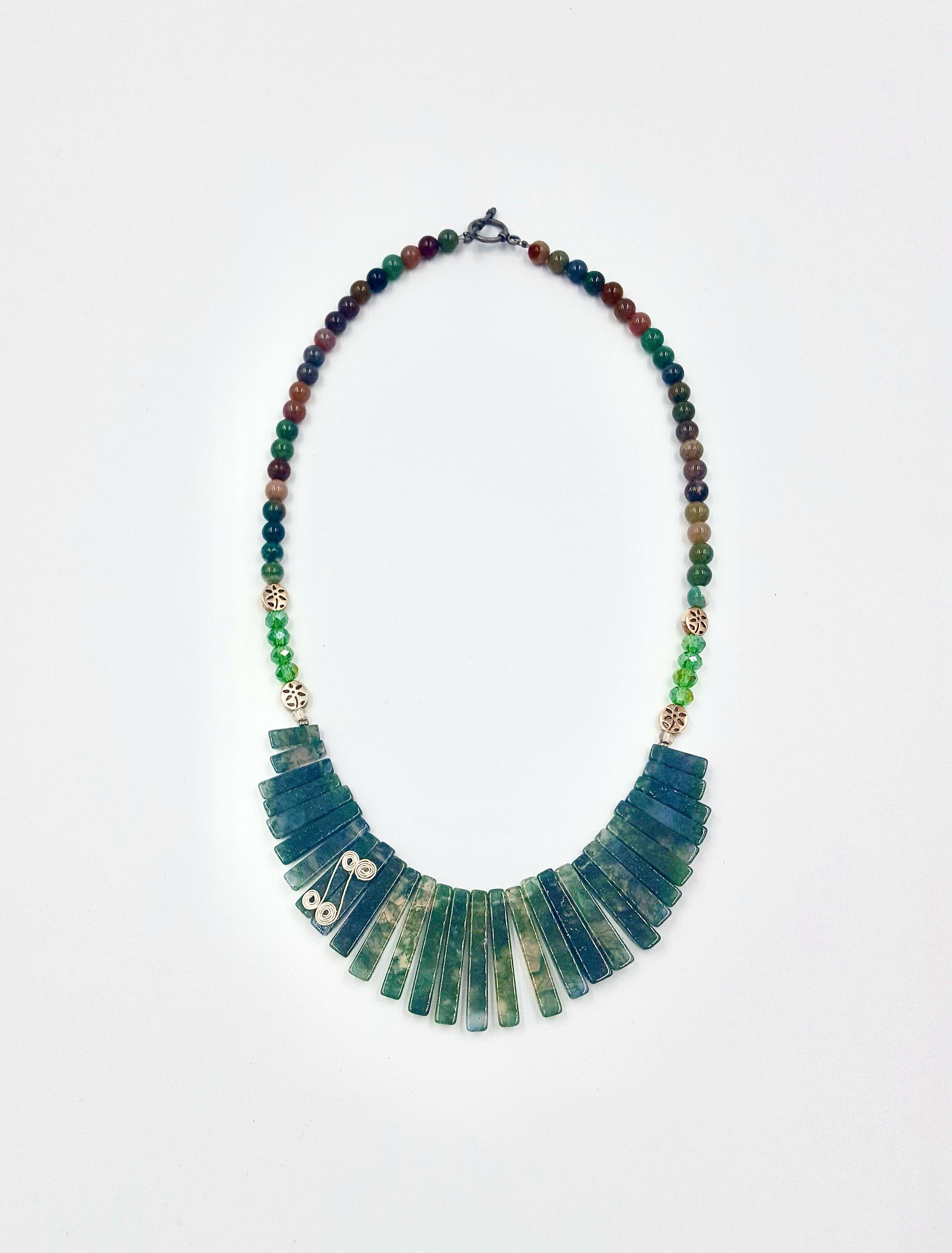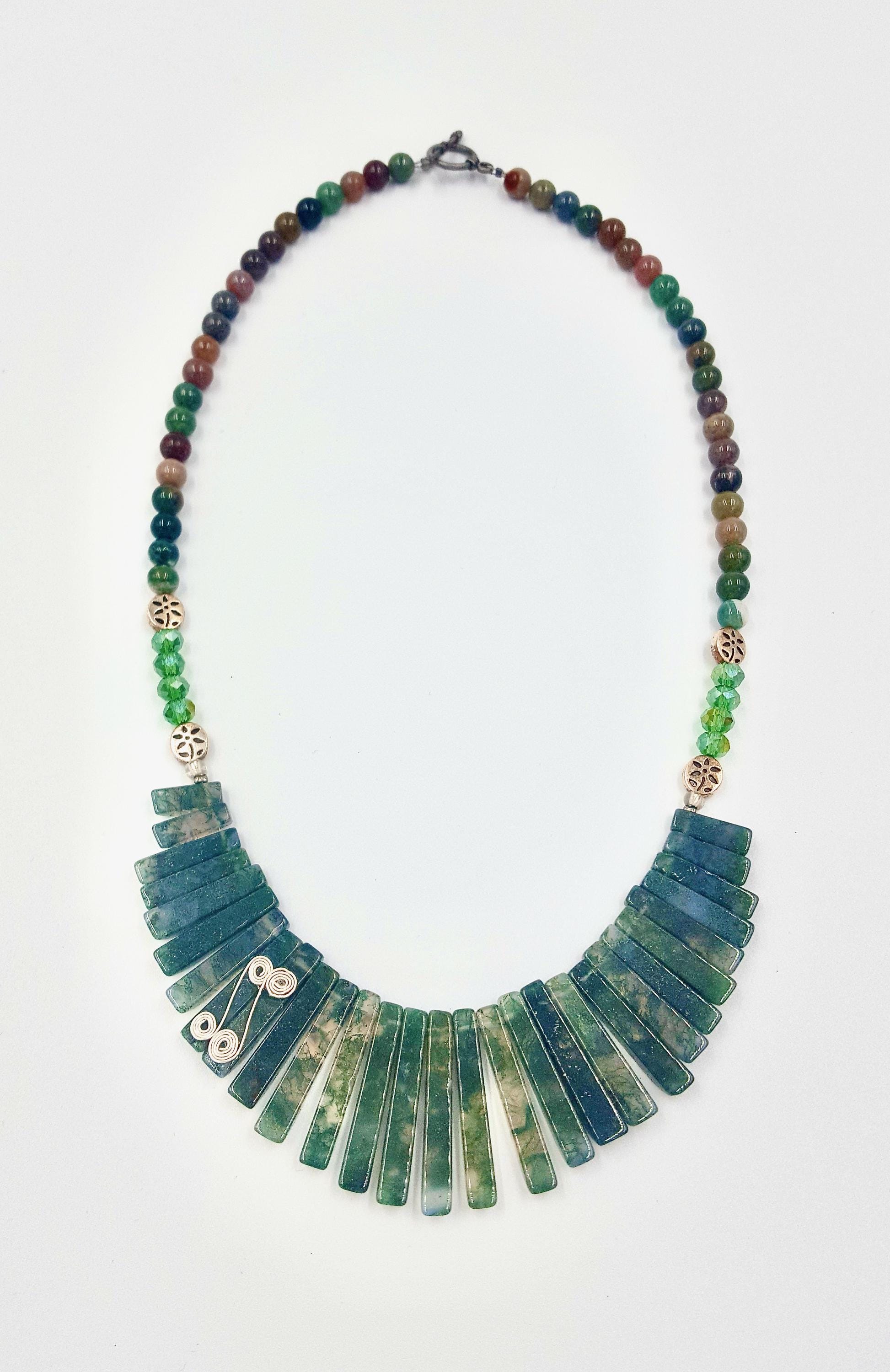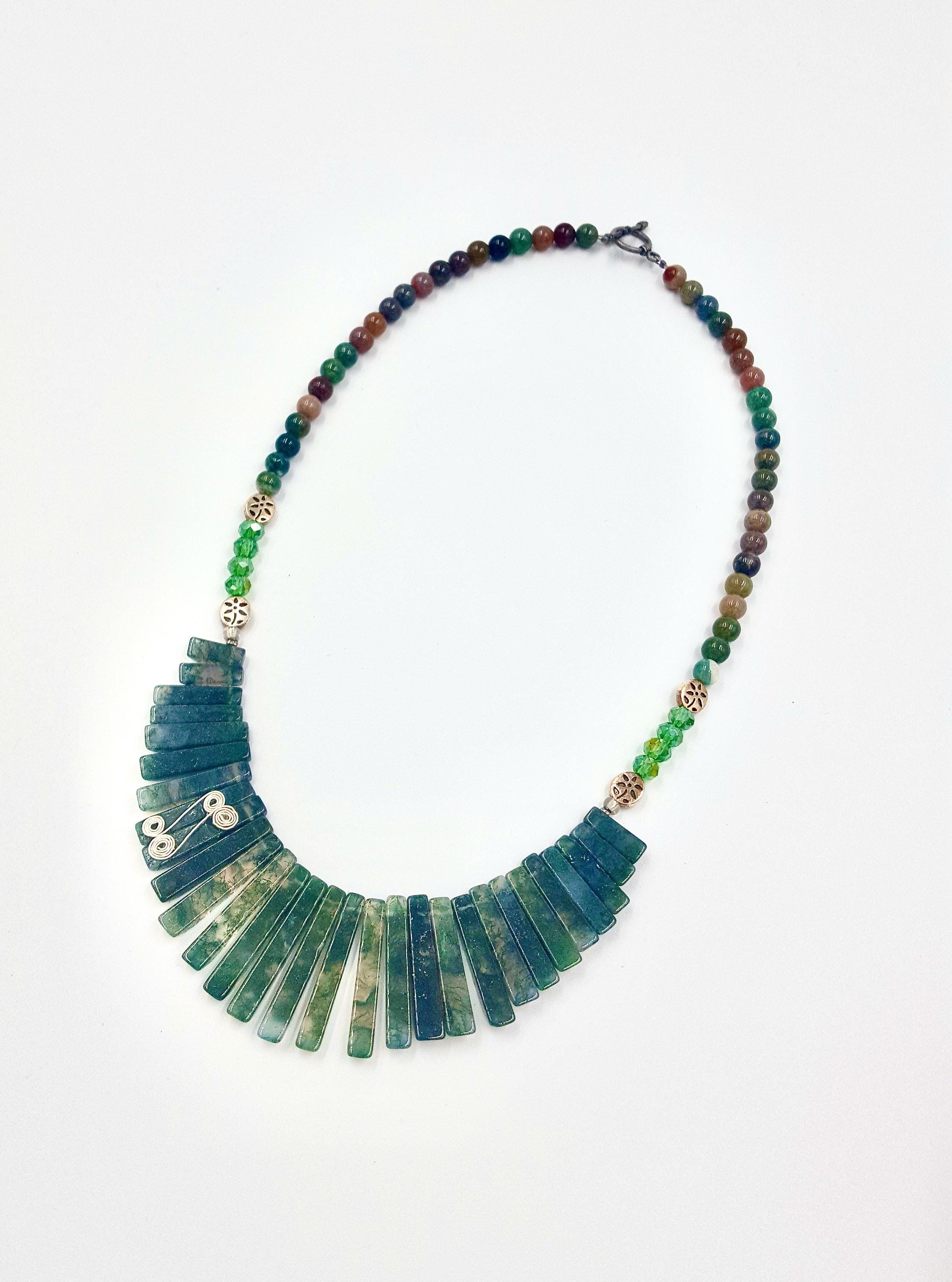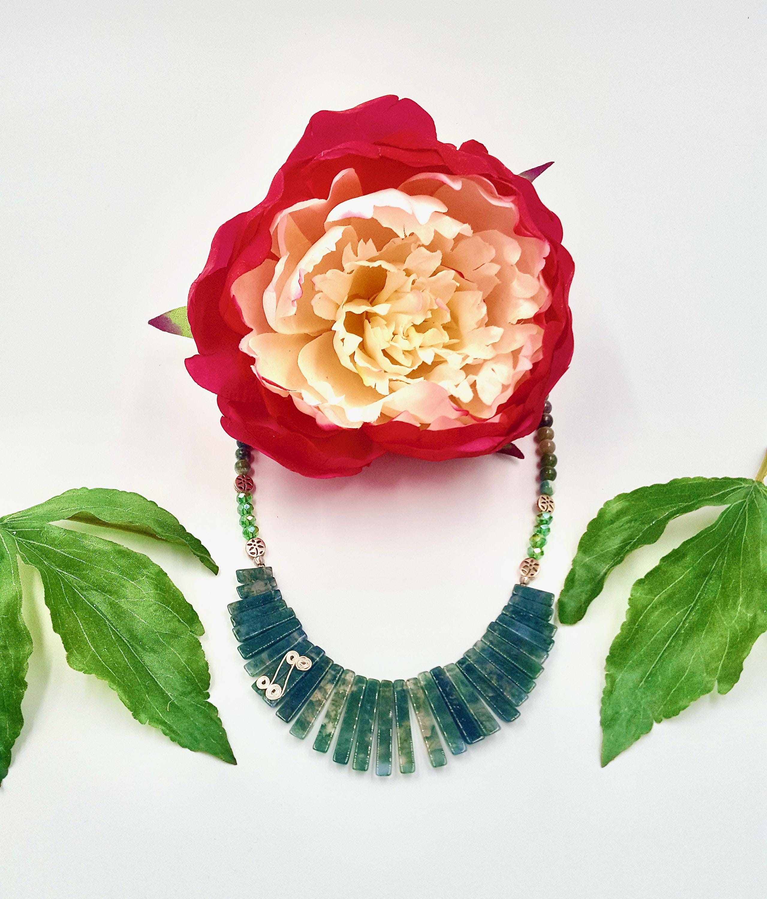 Emerald Green Stone Spiral Collar Floral, Crystal, Green and Brown Beaded Necklace by Lauren Jay Designs!