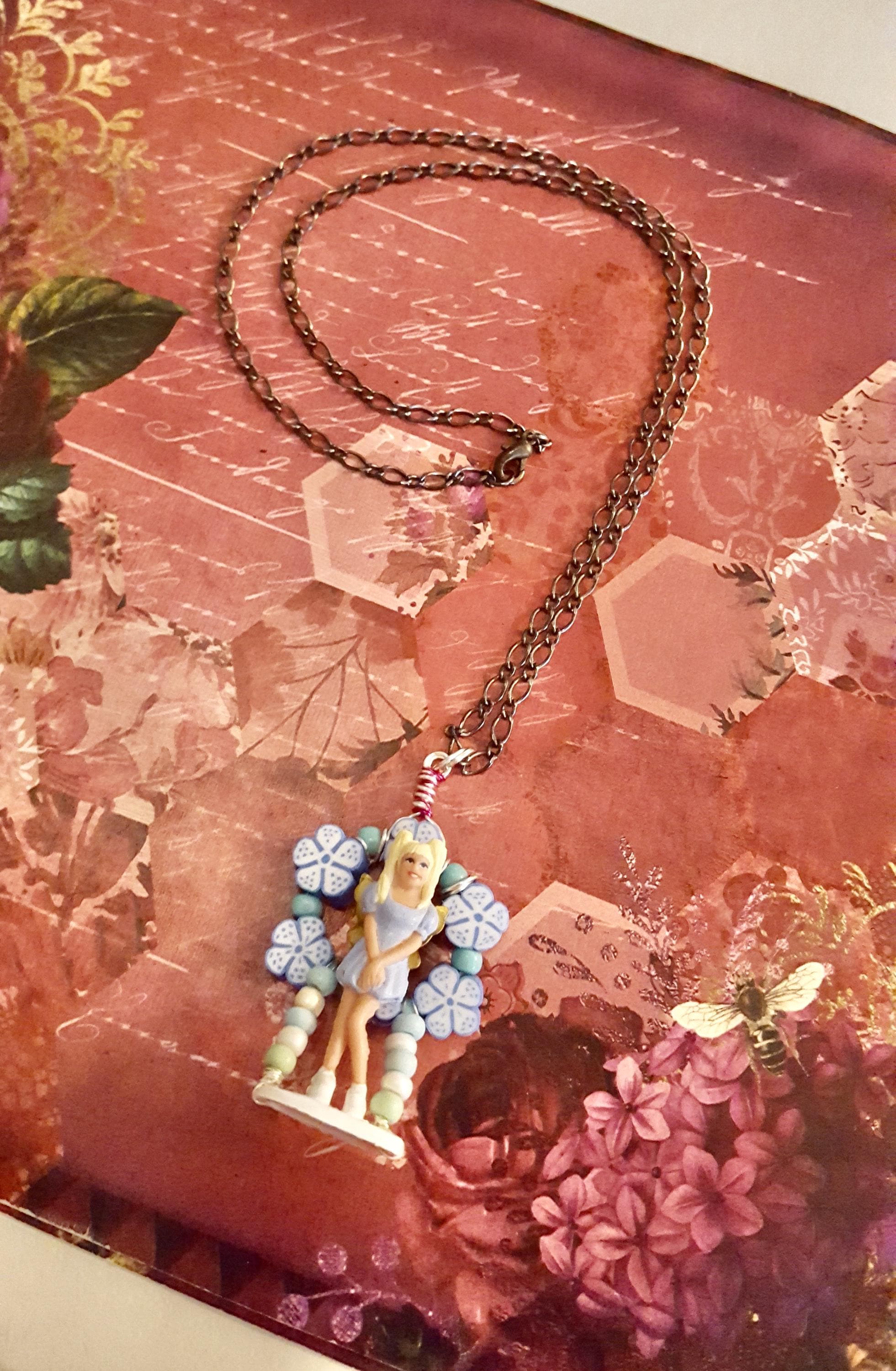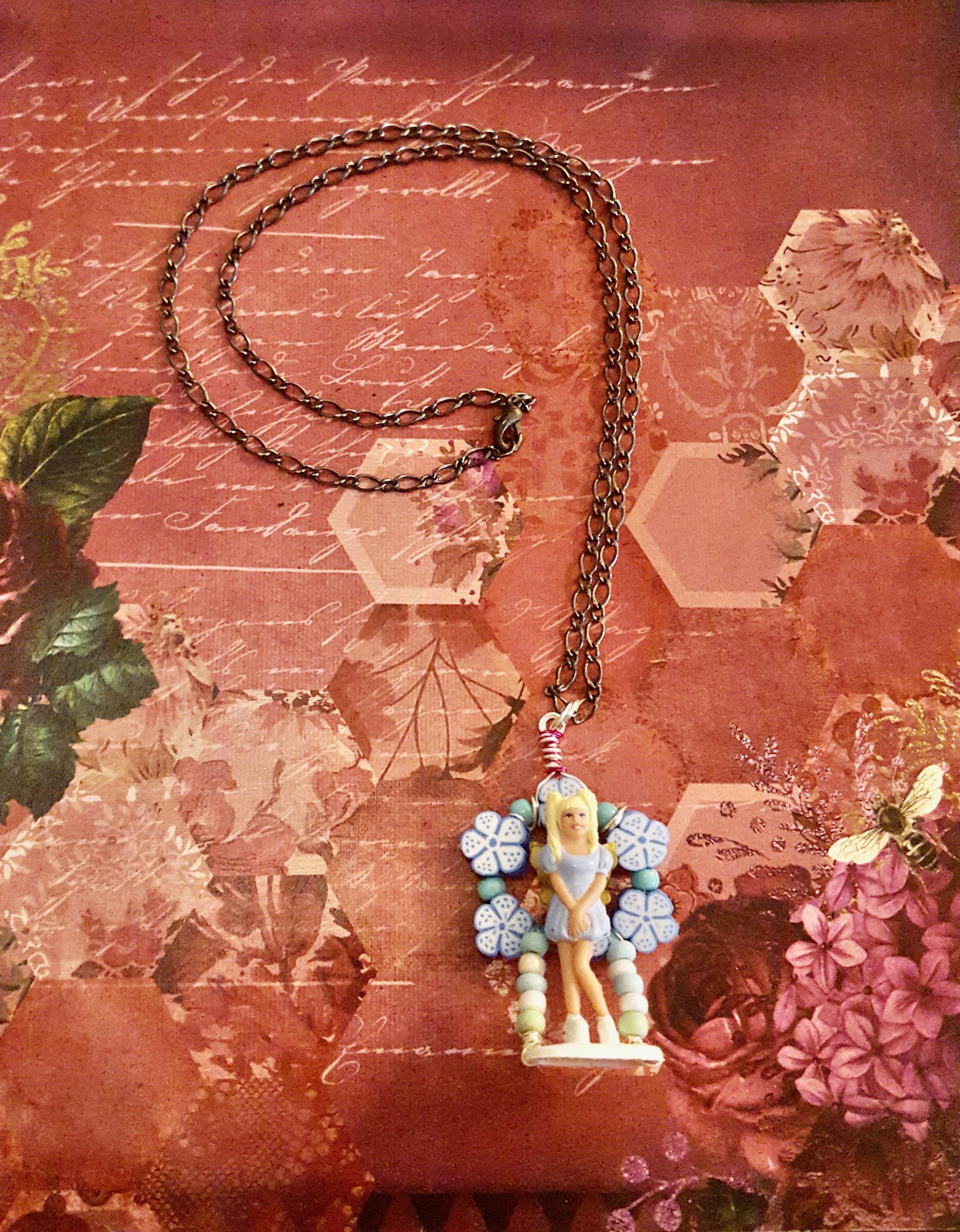 Spice Girls Baby Spice Floral Beaded Doll Pendant Chrome Chain Necklace by Lauren Jay Designs!