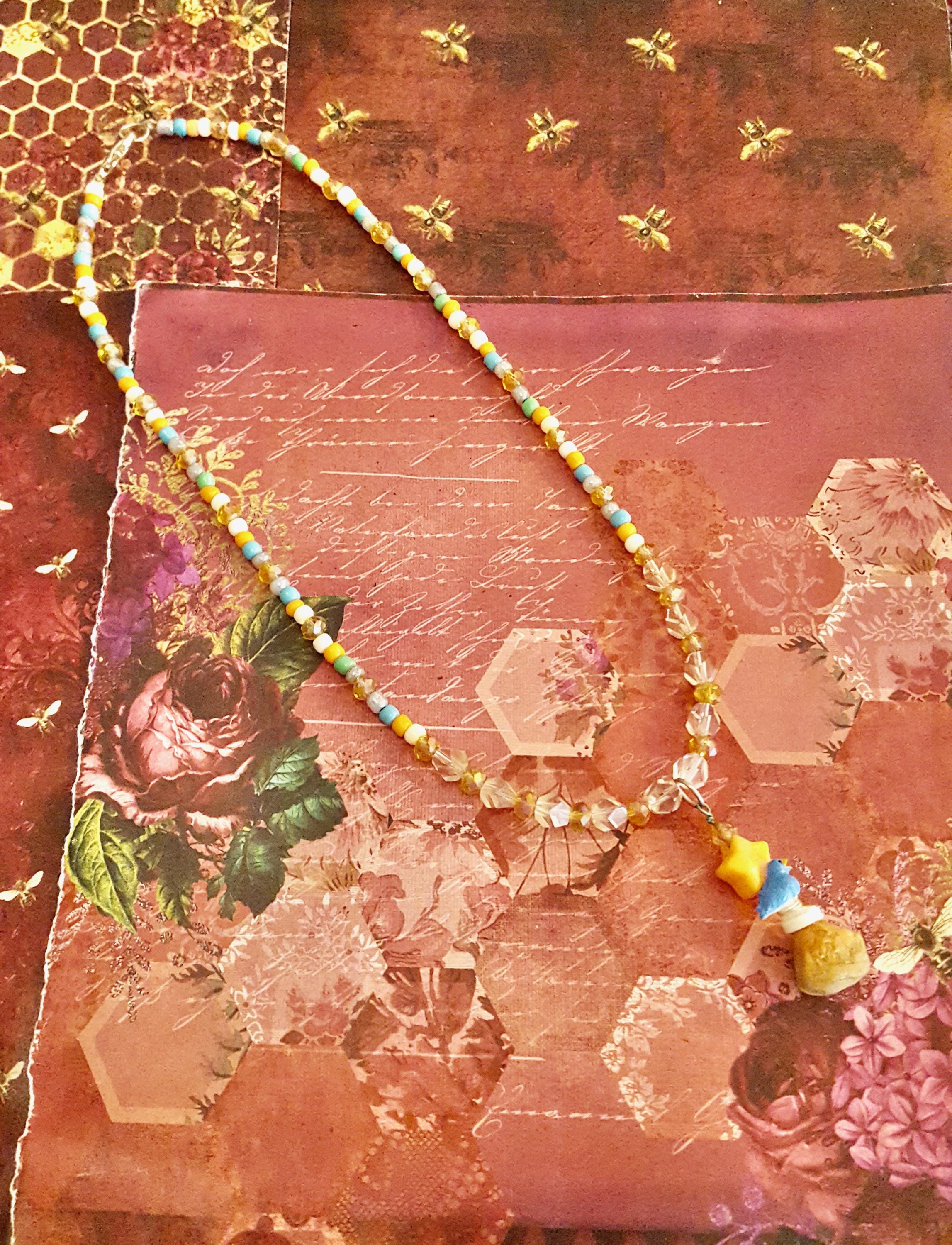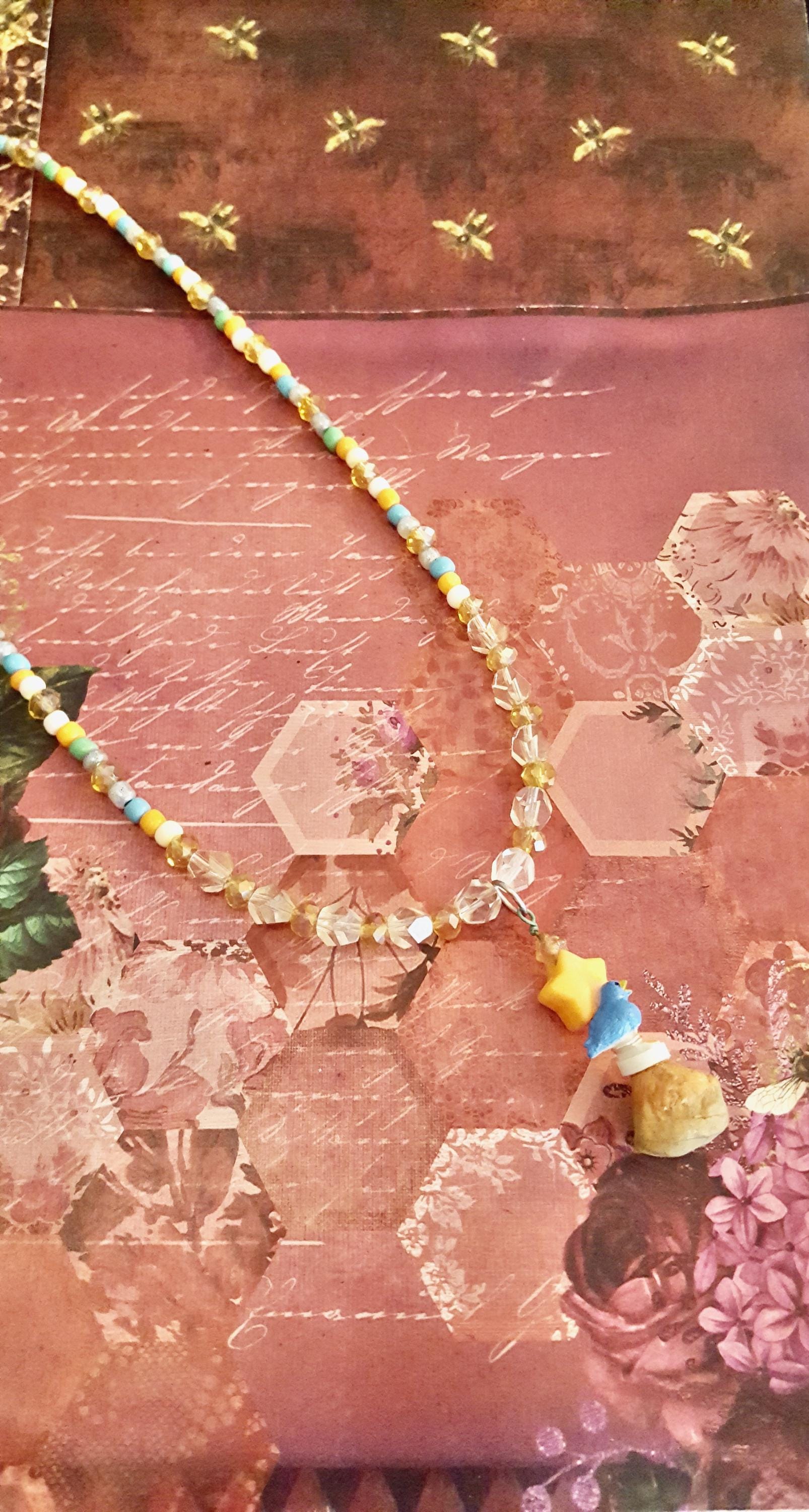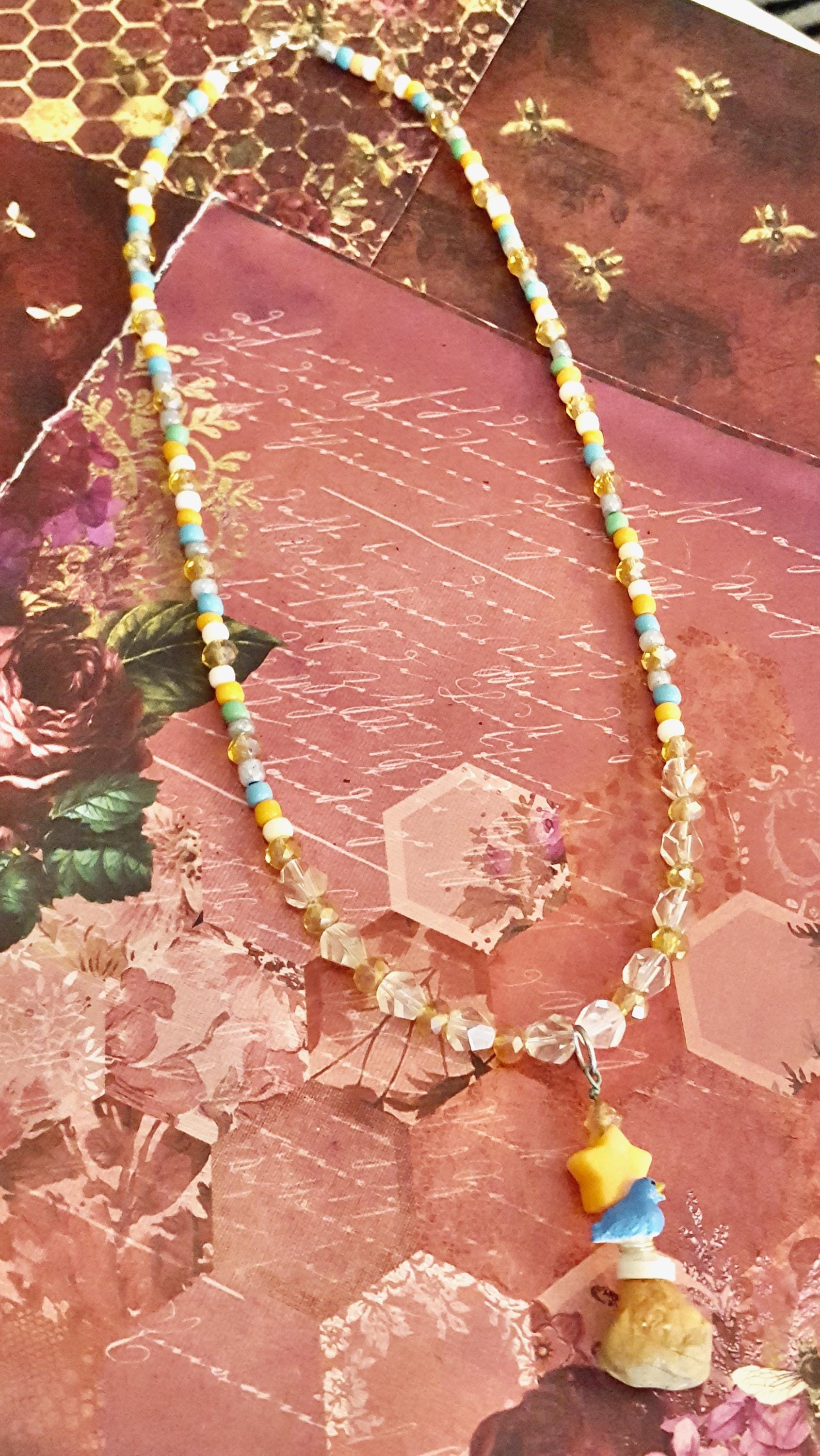 Vintage Trendmasters Blue Bird on a Rock Star Pendant White, Orange and Blue Beaded Necklace by Lauren Jay Designs!