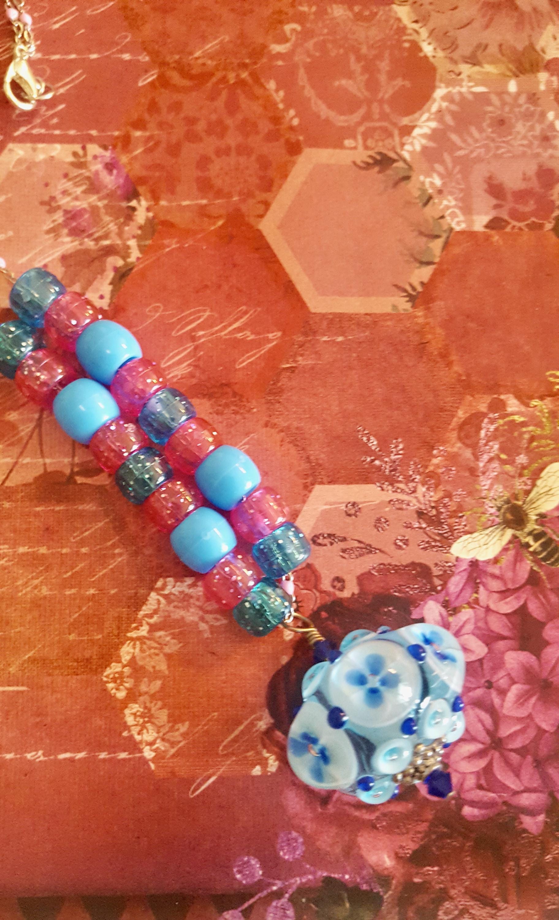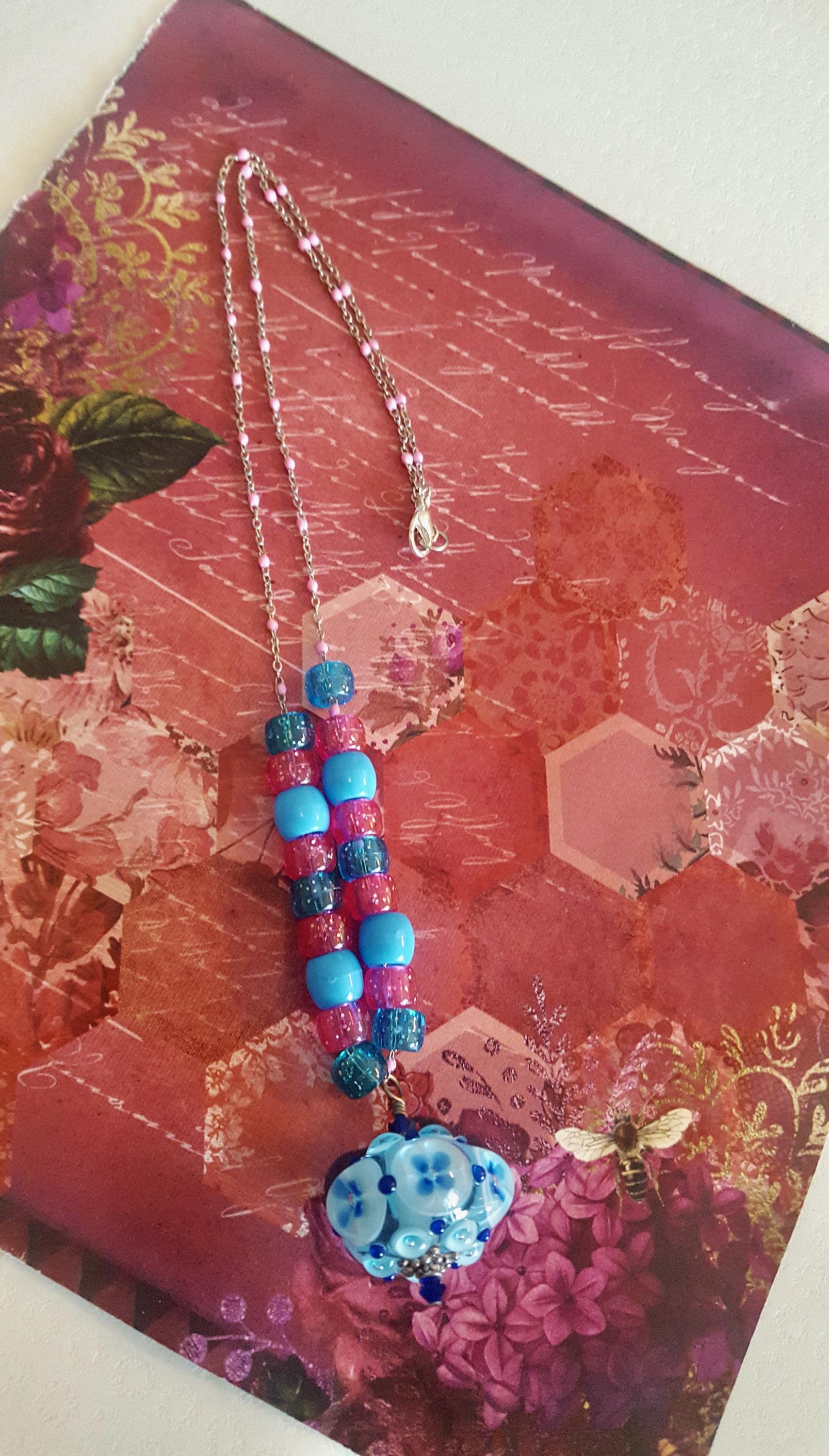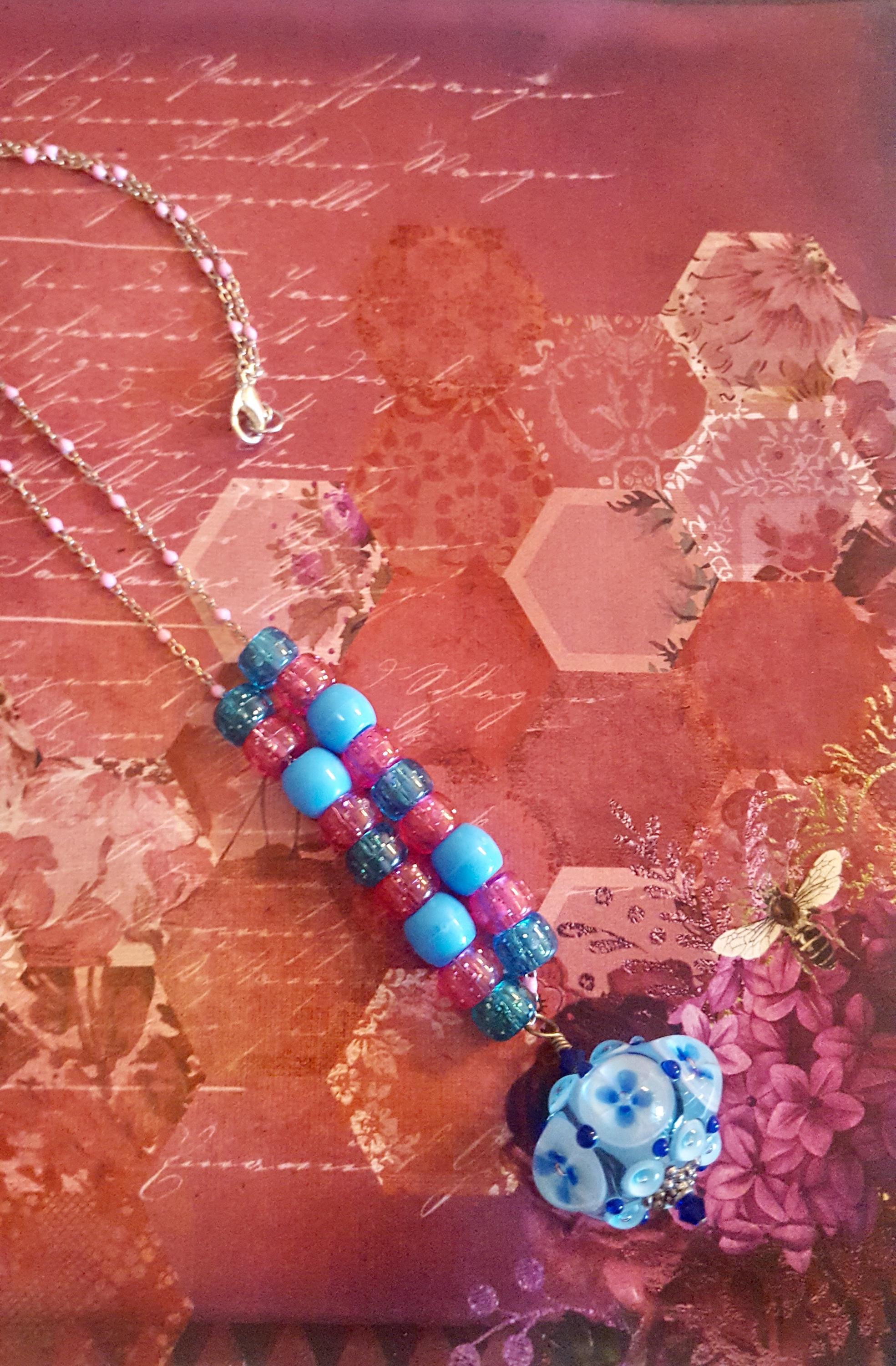 Pink/Blue Lampwork Glass Beaded Pendant Beaded Pink Chain Necklaces by Lauren Jay Designs!
