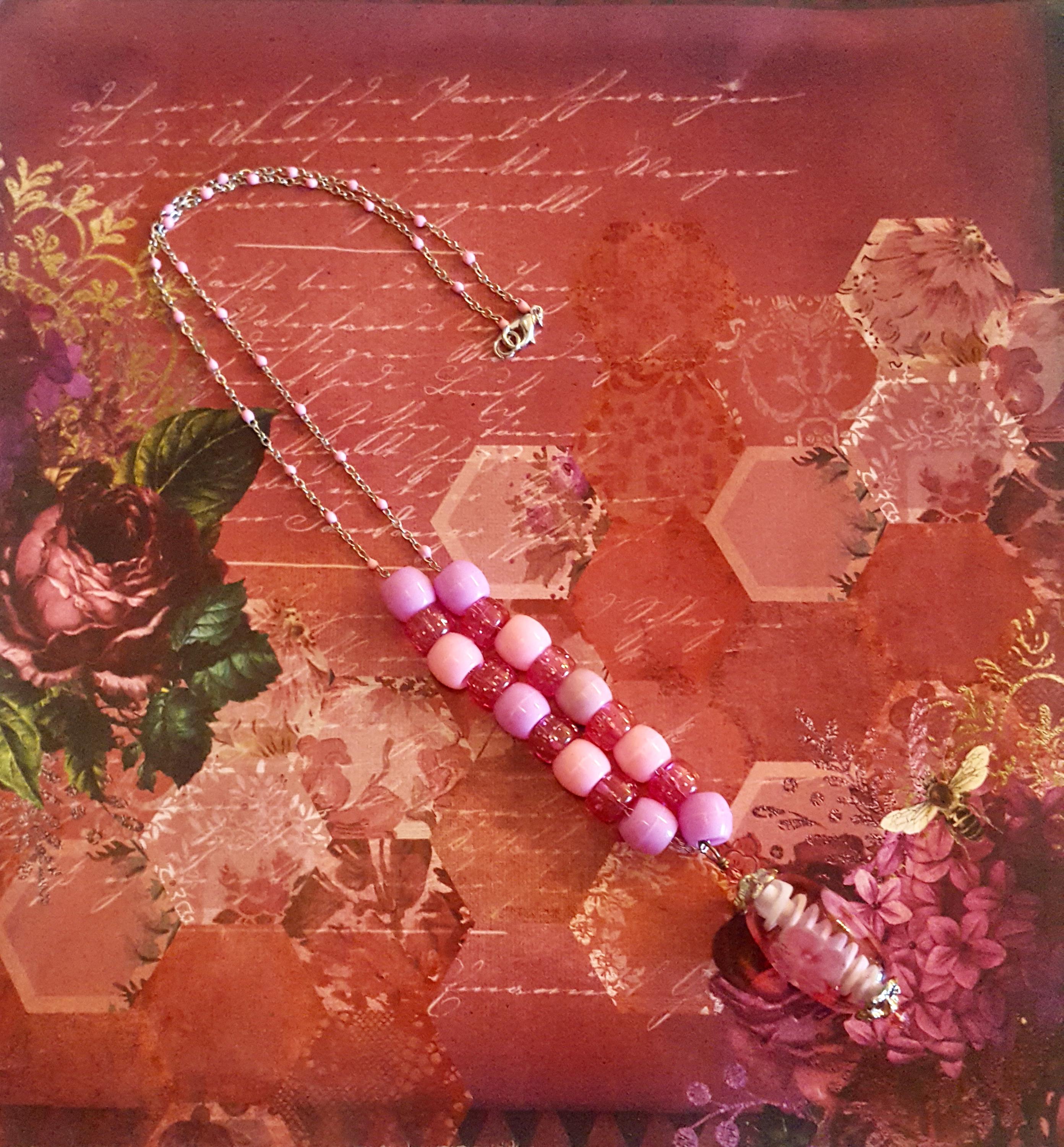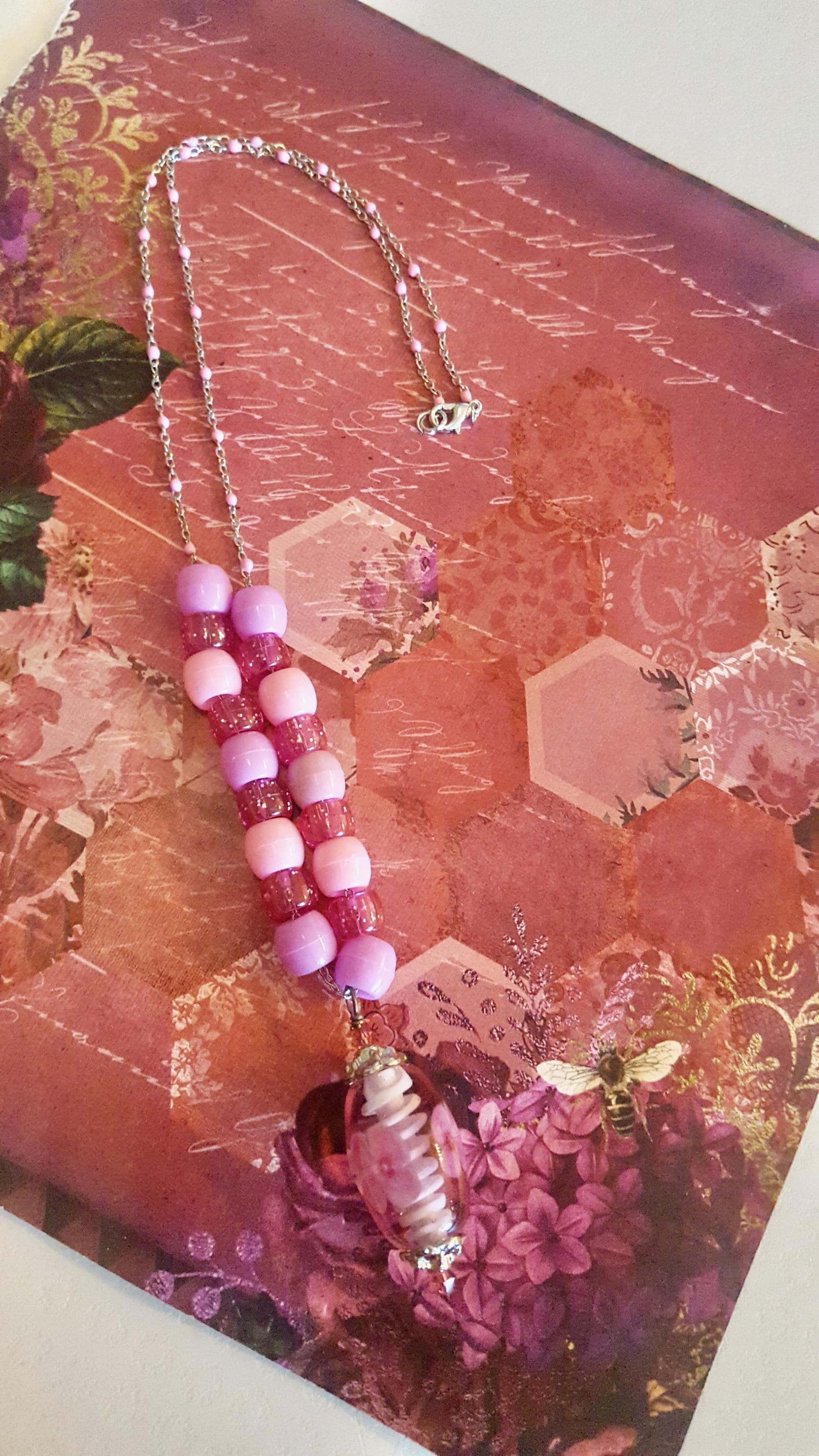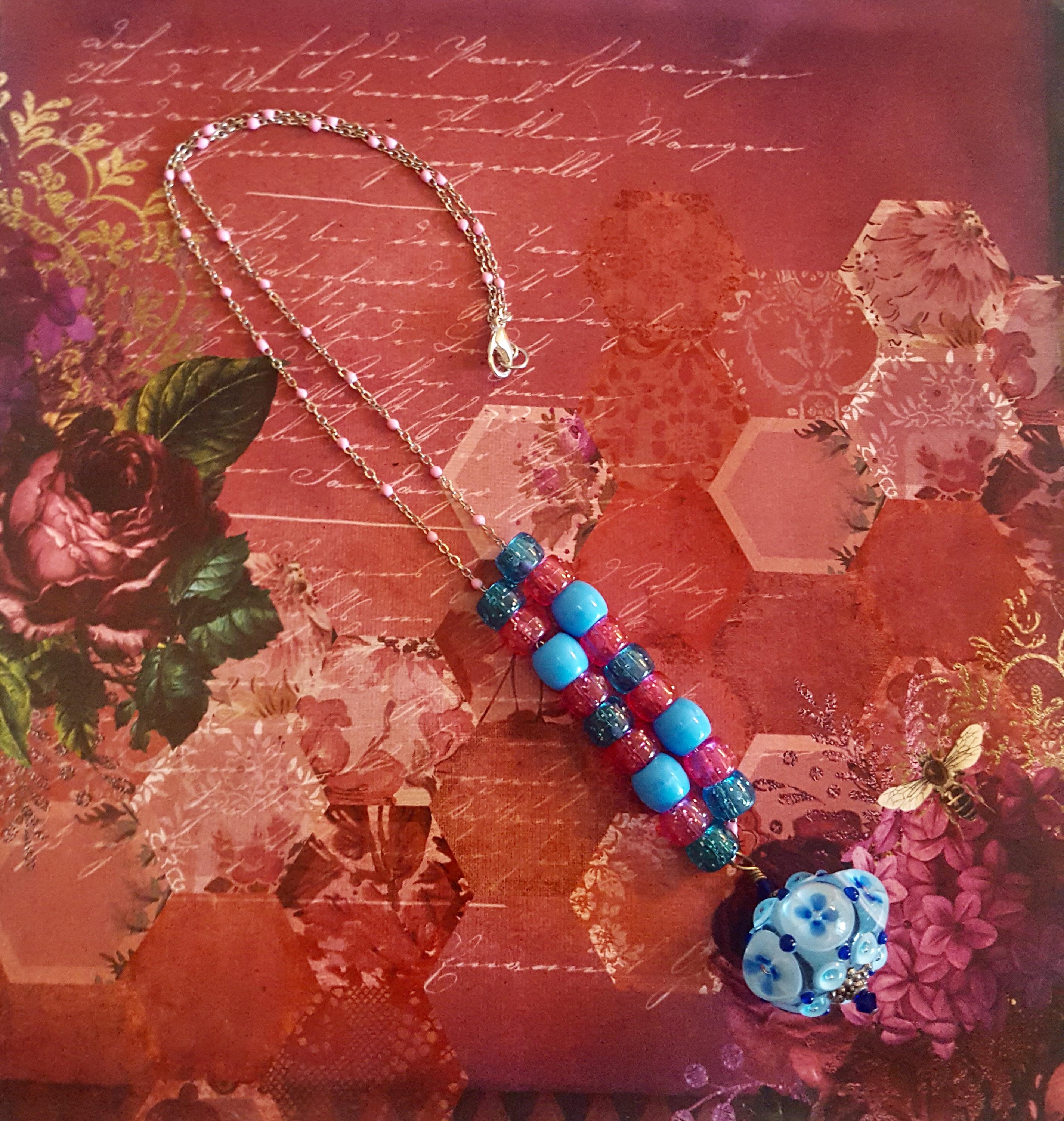Pink/Blue Lampwork Glass Beaded Pendant Beaded Pink Chain Necklaces by Lauren Jay Designs!