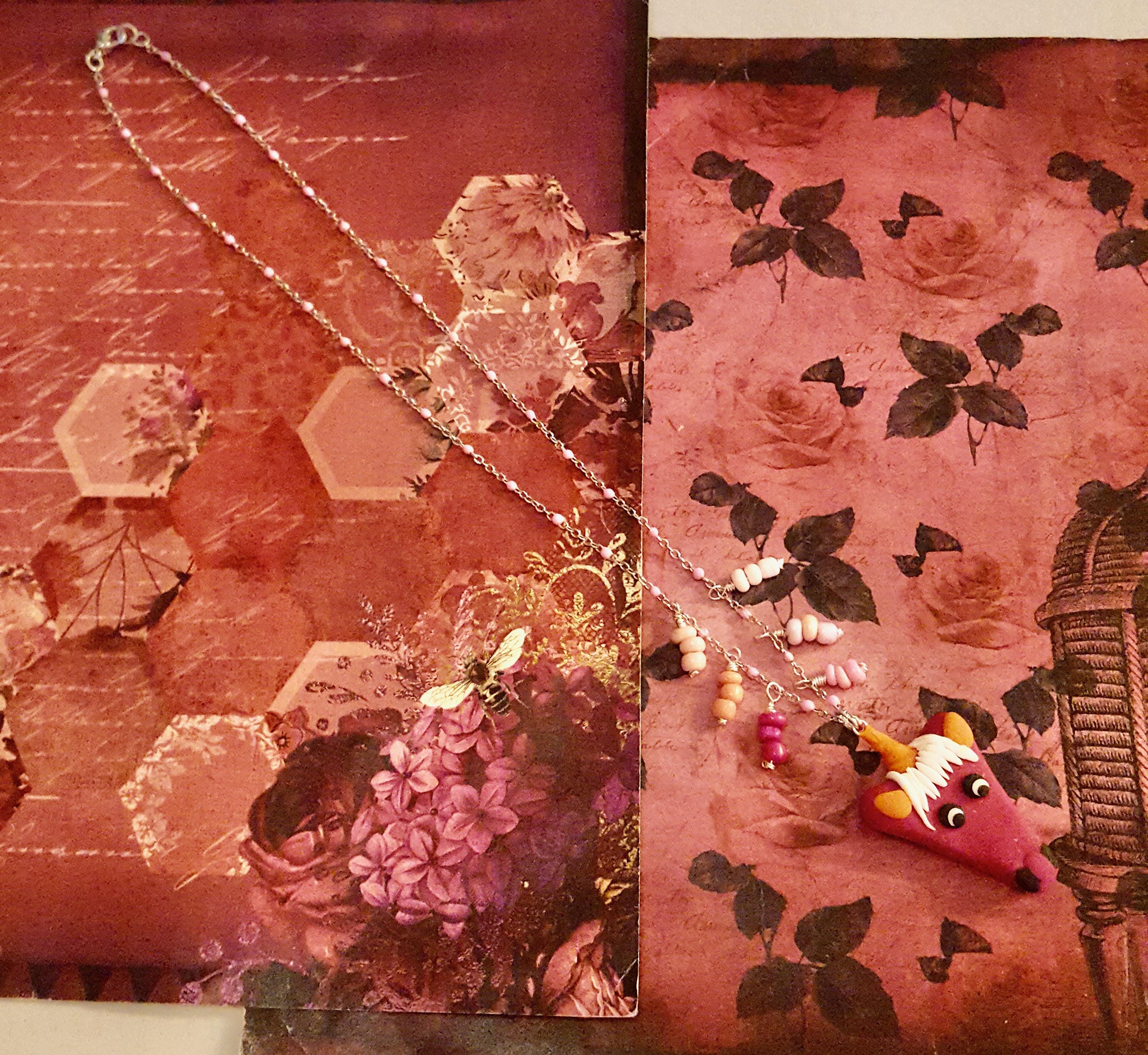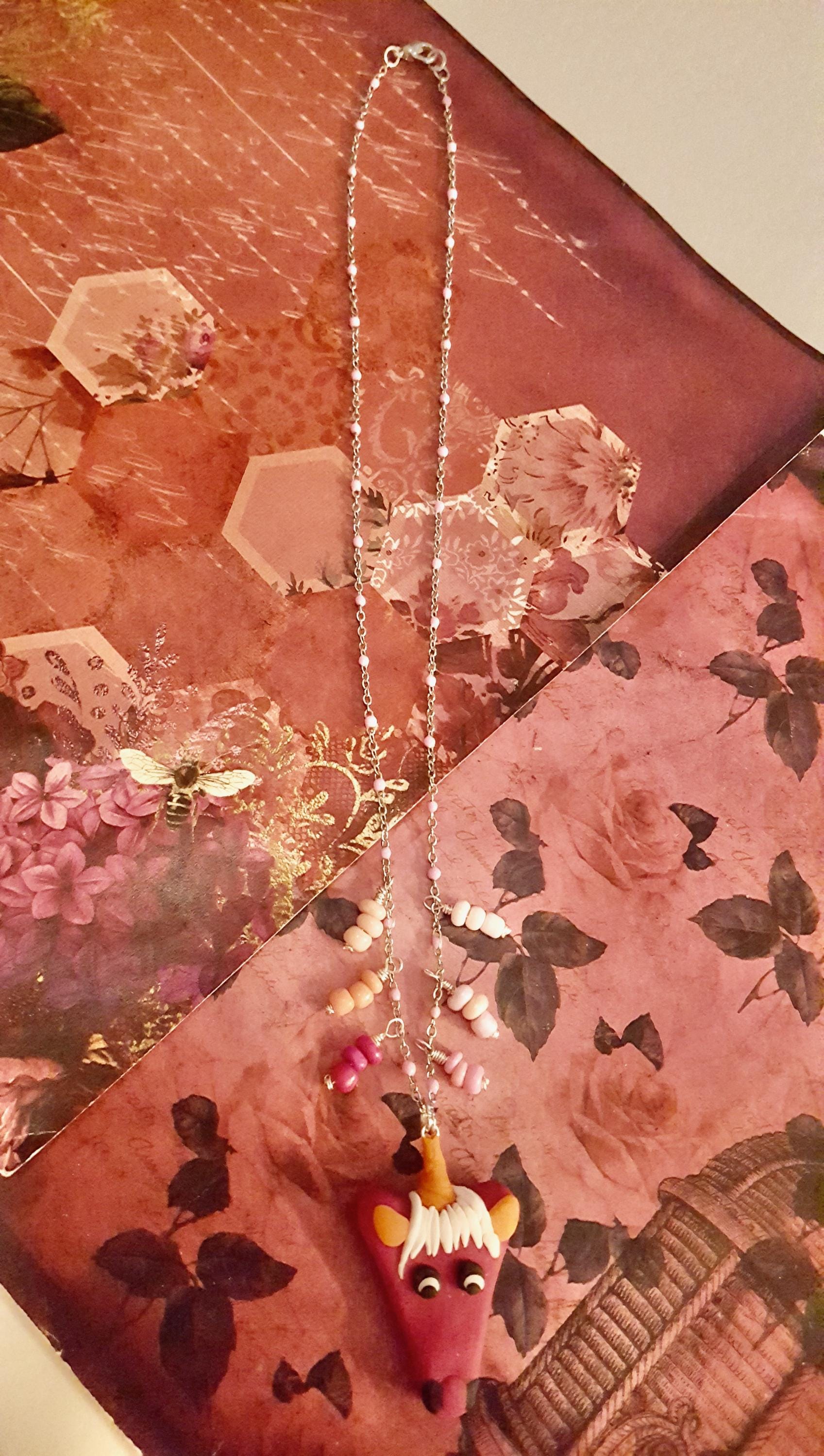 Pink and Orange Unicorn Polymer Clay Pendant Pink Beaded Chain Necklace by Lauren Jay Designs!