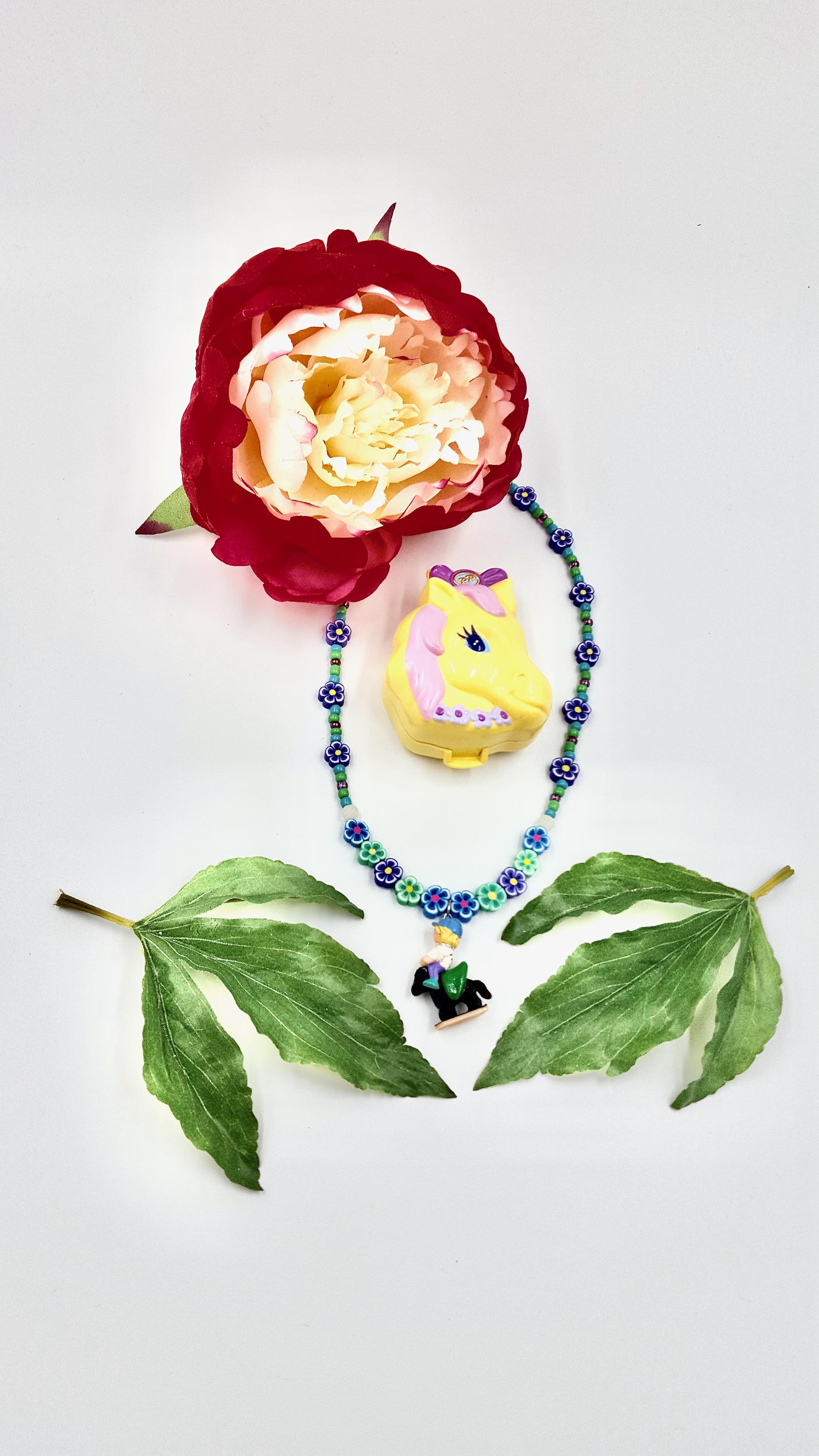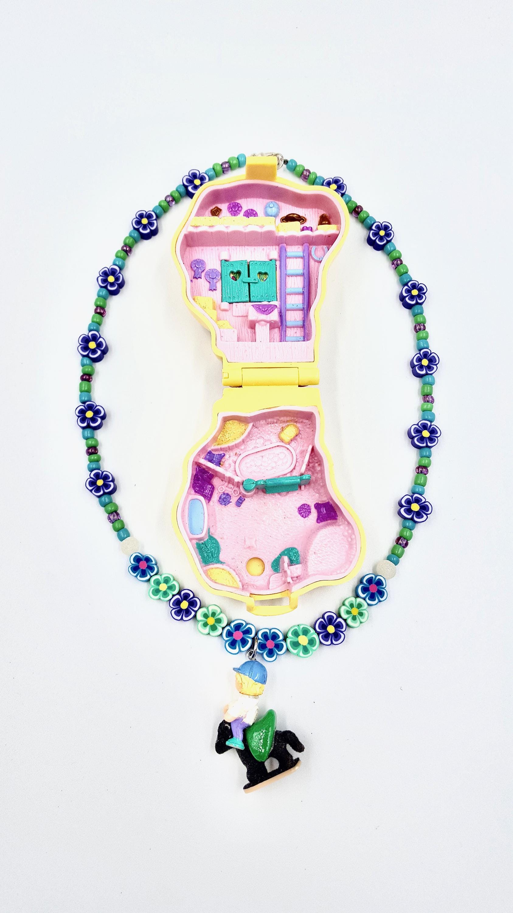 1994 Polly Pocket Pony Ridin' Play Set with Doll and Horse Pendant Beaded Floral Necklace by Lauren Jay Designs!