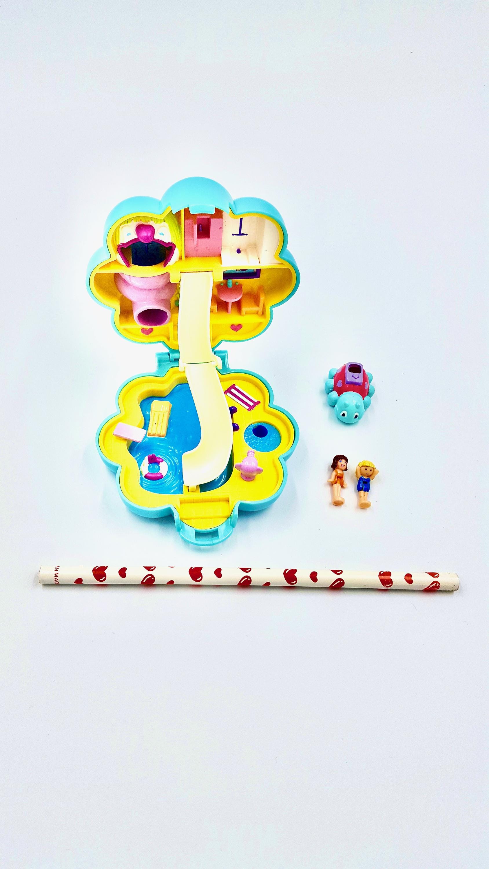 2000 Polly Pocket Water Fun Park Reproduction, 2 Dolls, Pencil Topper and Pencil!