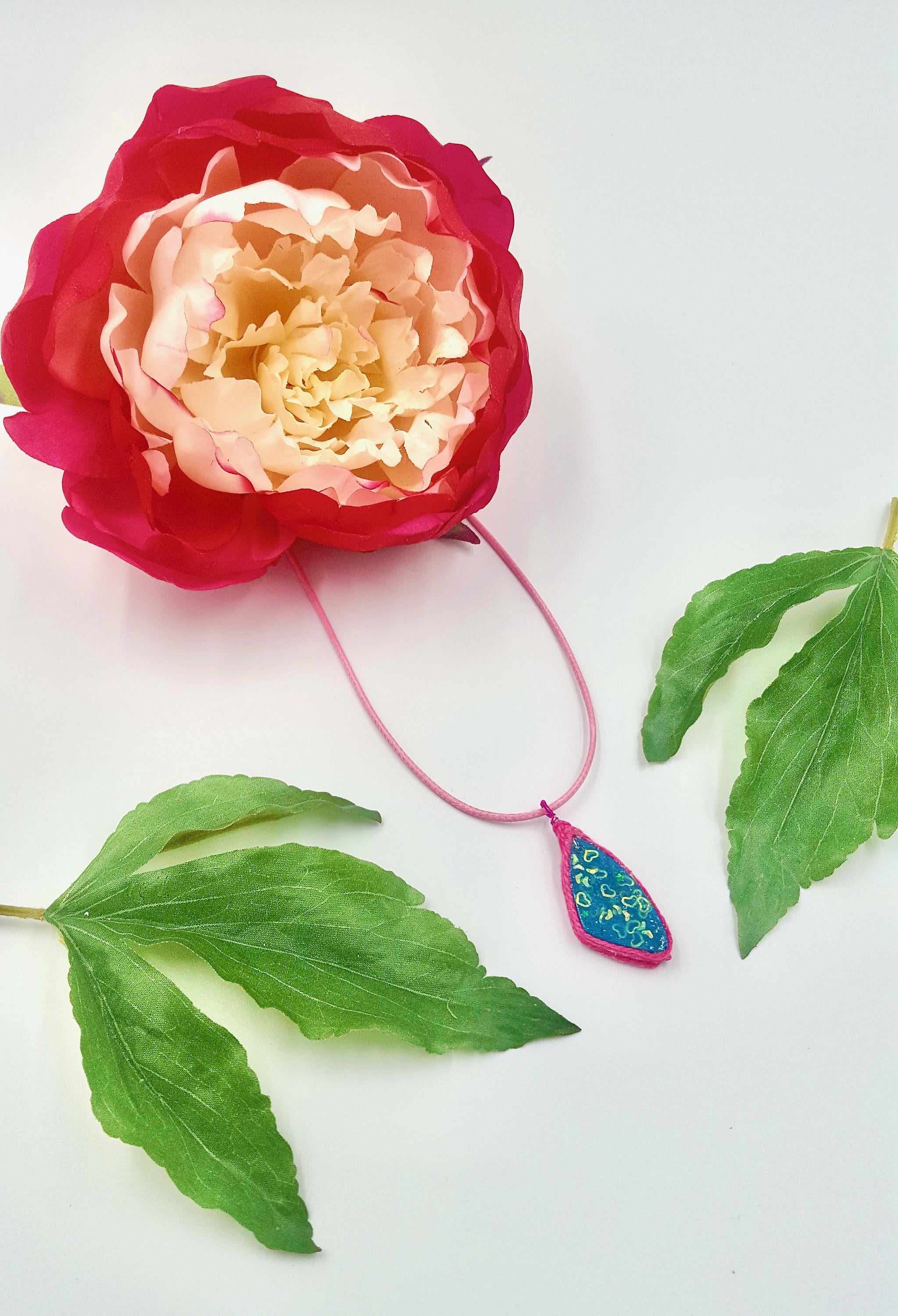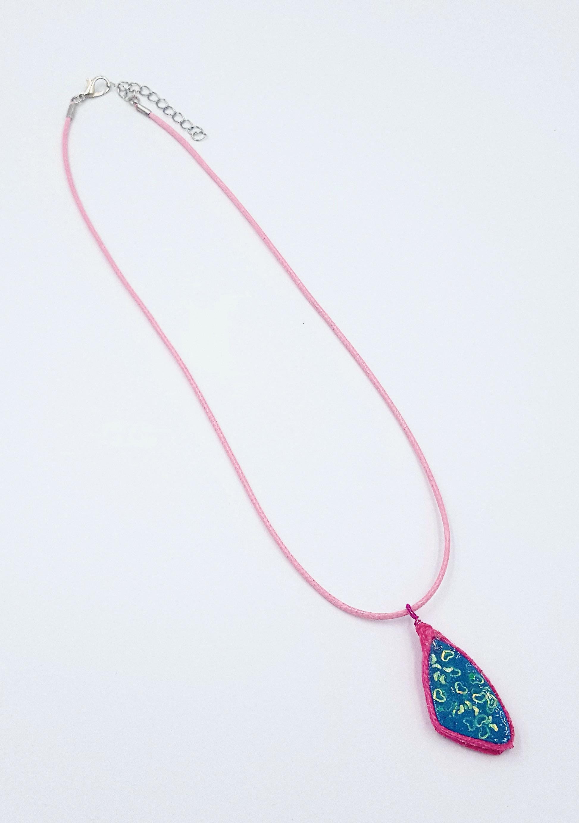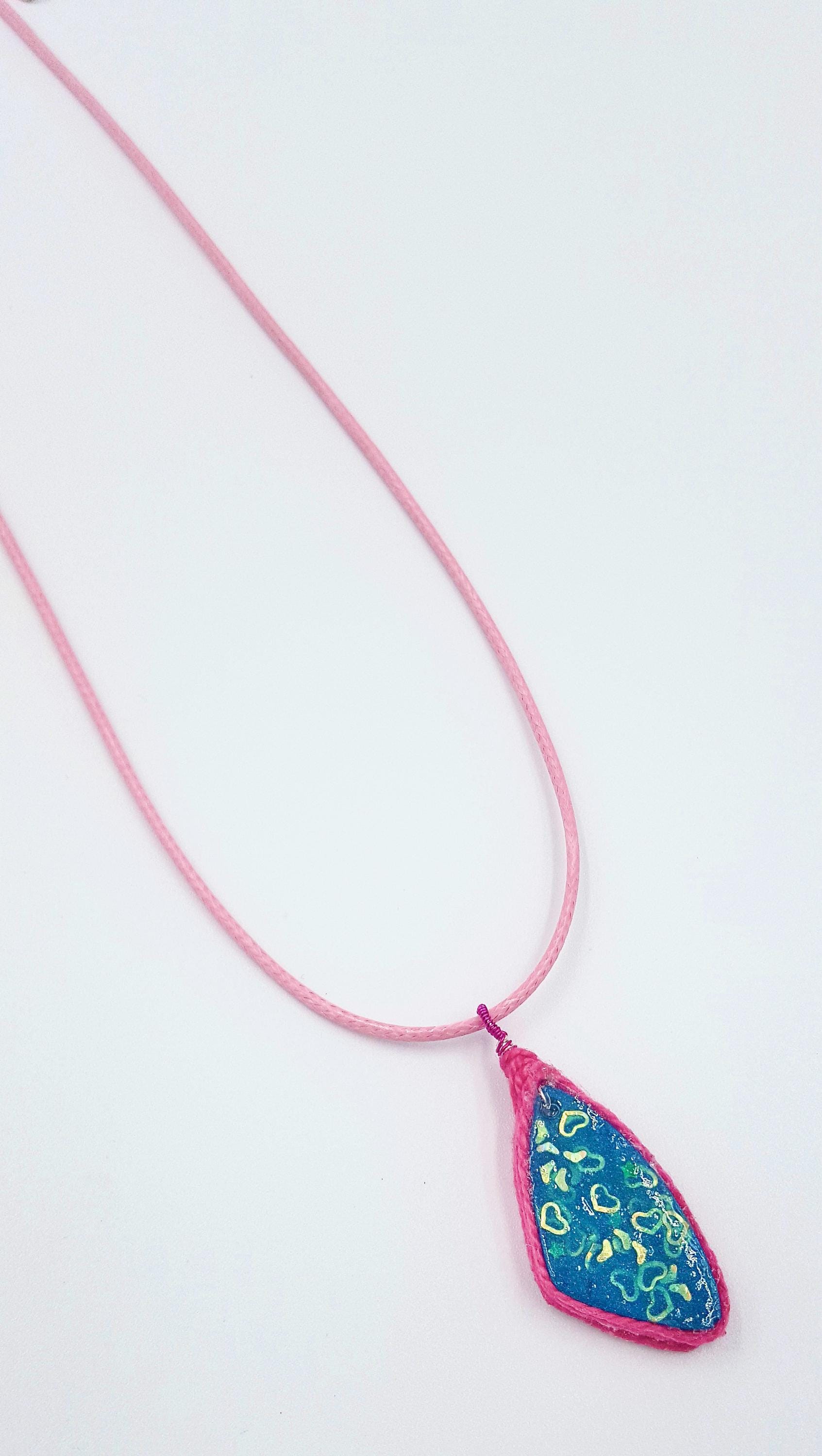 Teal Resin Gold Heart Sparkle Triangle Pendant with Pink Border on Pink Cord Necklaces by Lauren Jay Designs!