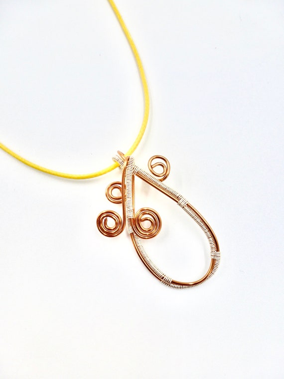 Copper and Silver Wire Wrapped Spiral Loop Pendant Orange Cord Necklaces by Lauren Jay Designs